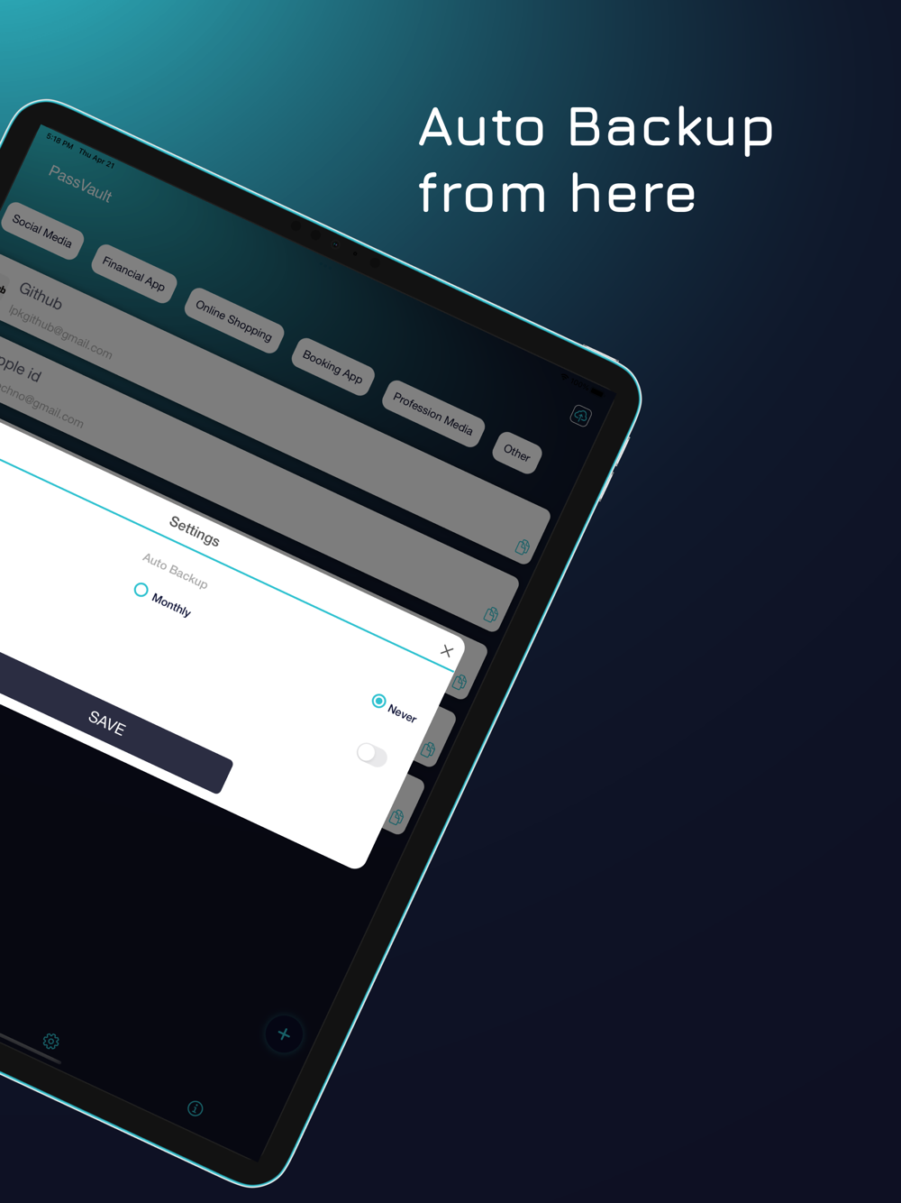 PassVault will help you to store all your passwords easily and safely using Advanced Encryption Standard (AES-256). The only thing you have to do is to remember a master passcode which is used as encryption key. In additionally If your device has touch id than only you can see password for unlock the password.