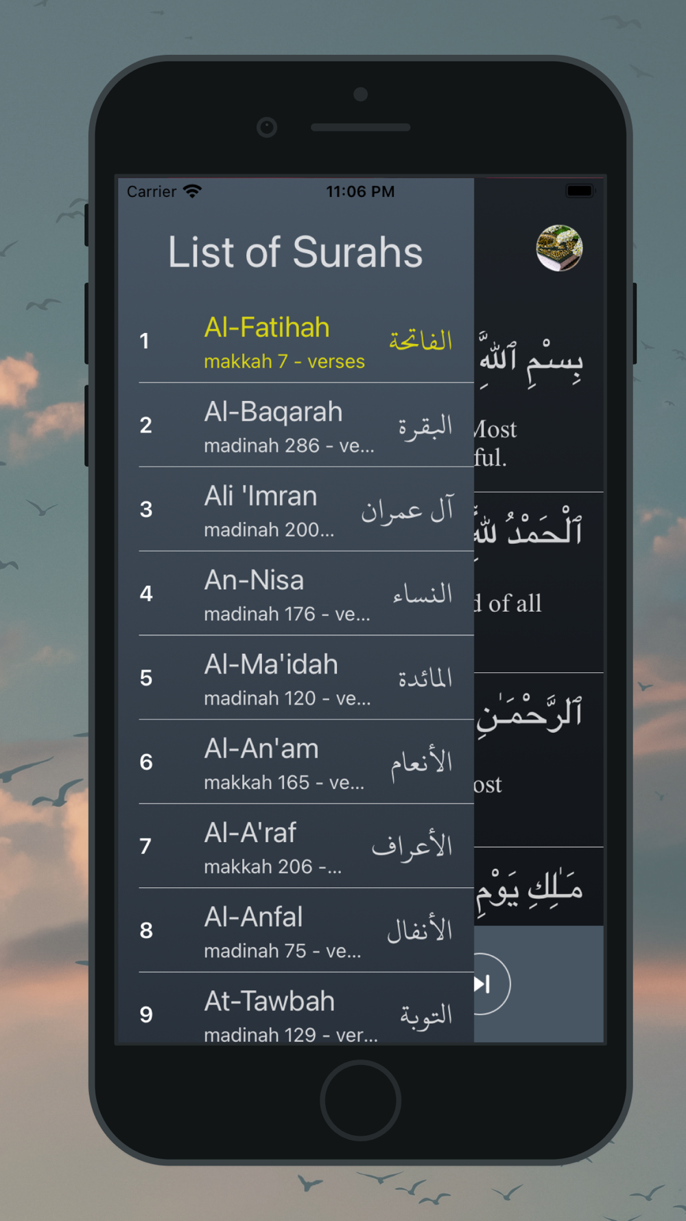 Listen Quran features the full Quran with Arabic scripts, phonetics, translations and audio recitations from different reciters.