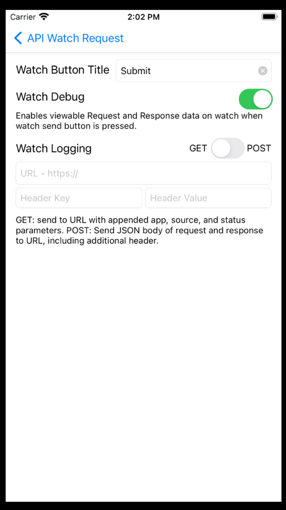 Create REST API requests and execute with a button on your Apple Watch. Includes multiple requests, customization, and debugging.