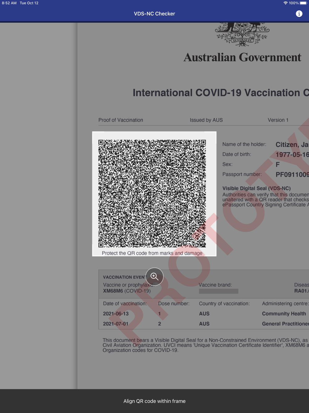 To fill any possible gaps in authorities’ capacity to use VDS-NC, the Australian Passport Office has developed this app. It uses ICAO PKI to determine whether a 2D barcode under inspection: