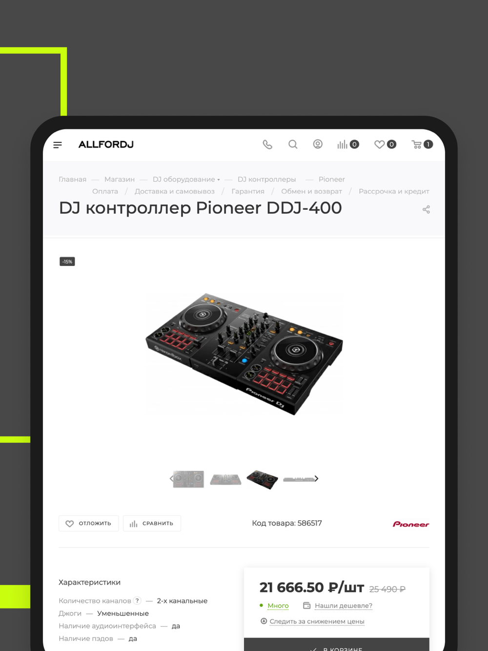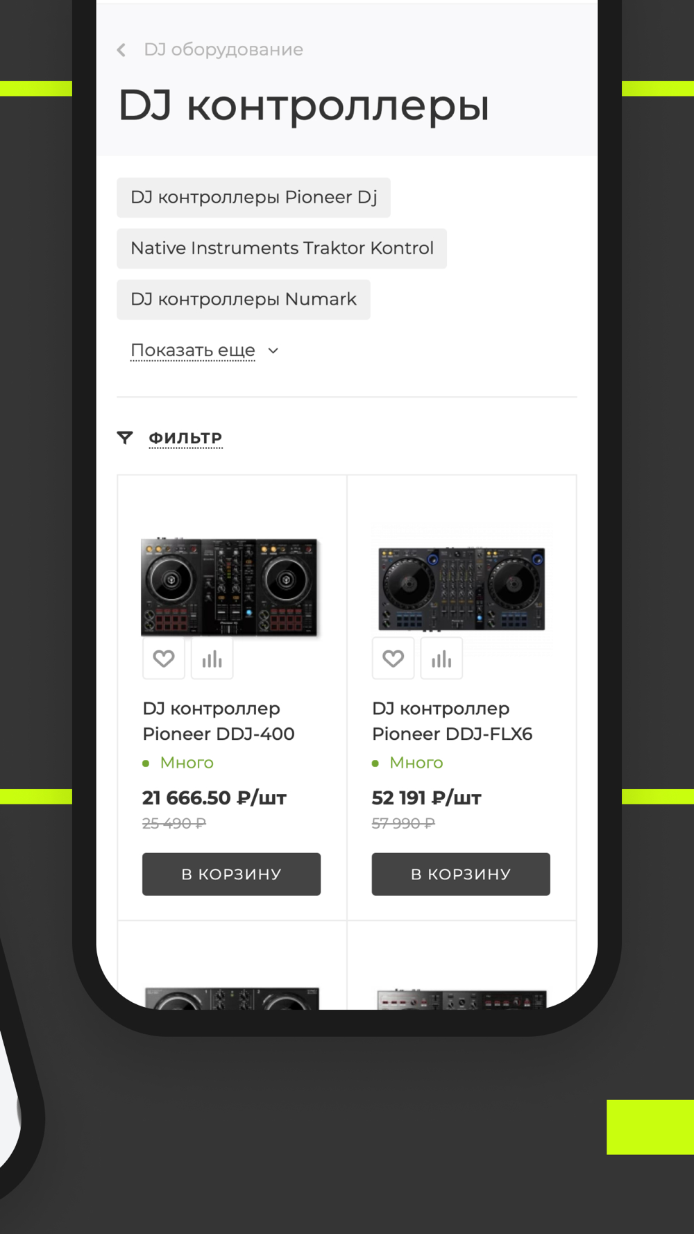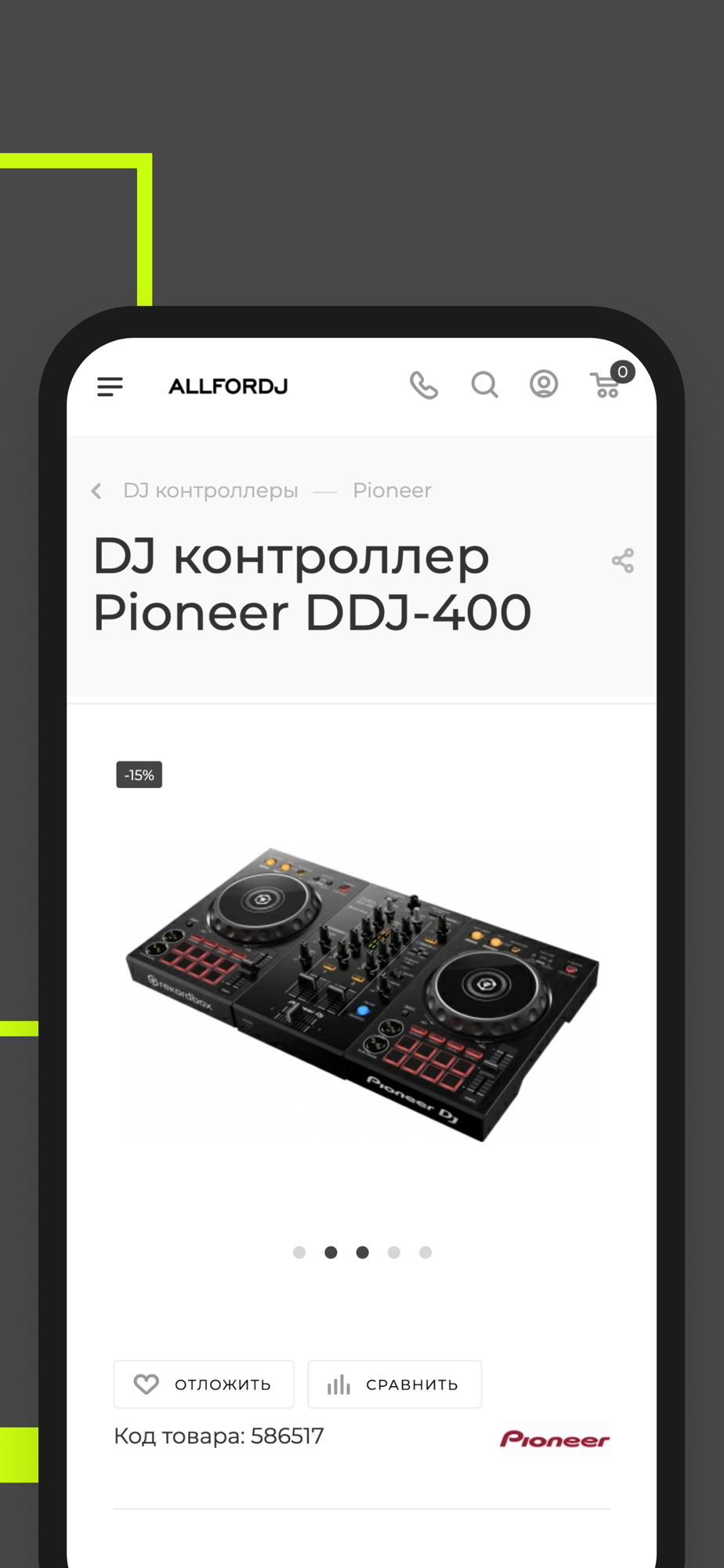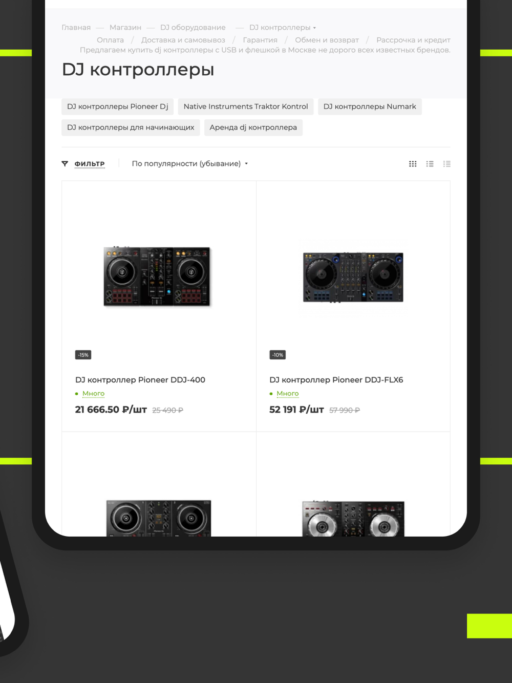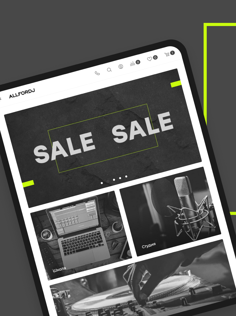 Приложение магазина-студия для диджеев и музыкантов с доставкой оборудования по России и СНГ.