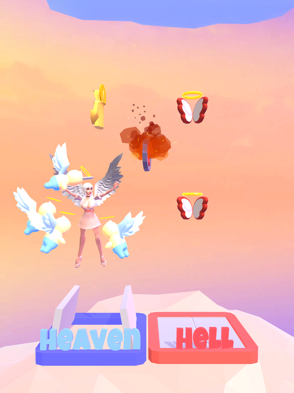 Catch the correct collectibles while going up to become an angel and reach heaven.