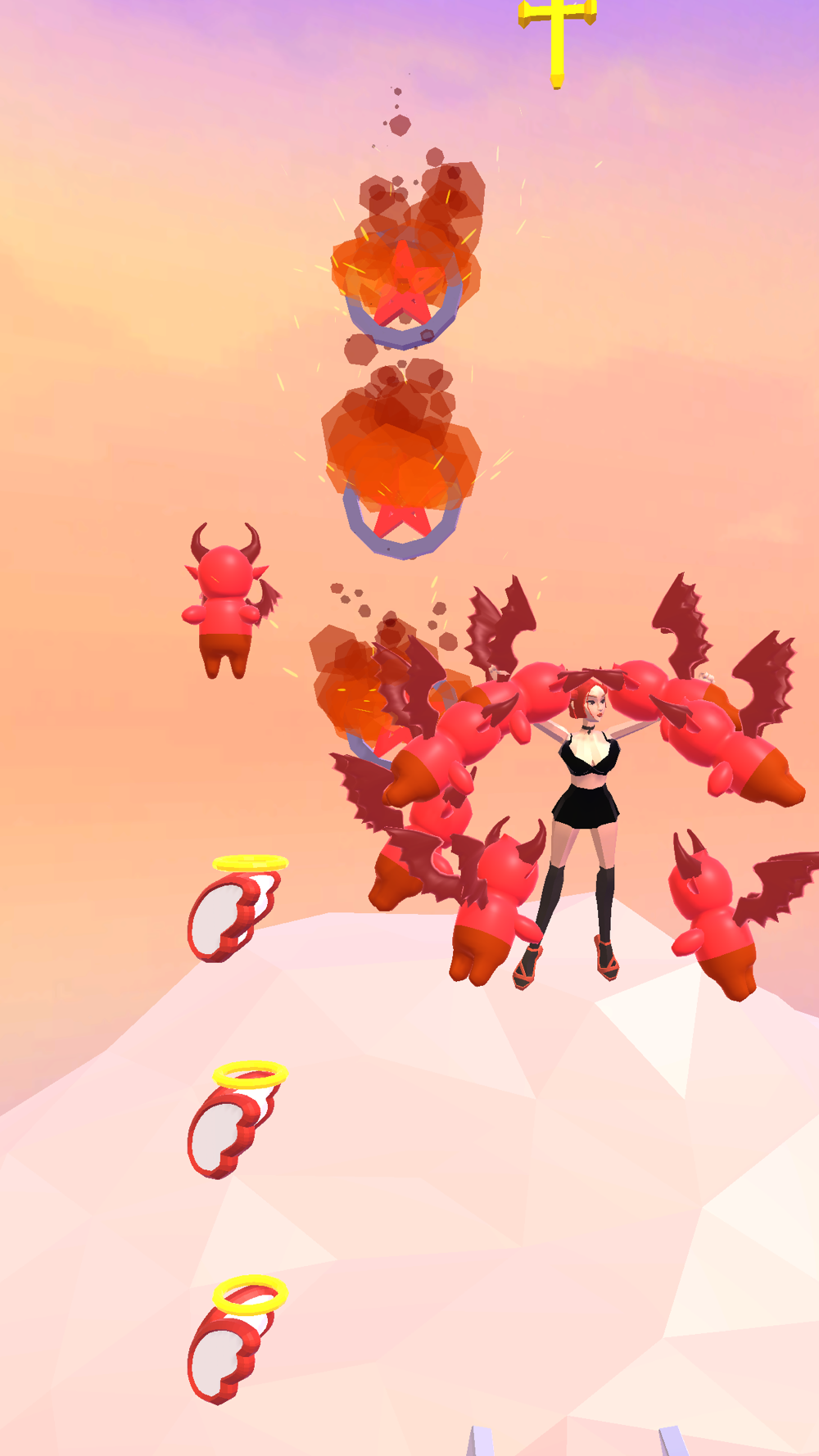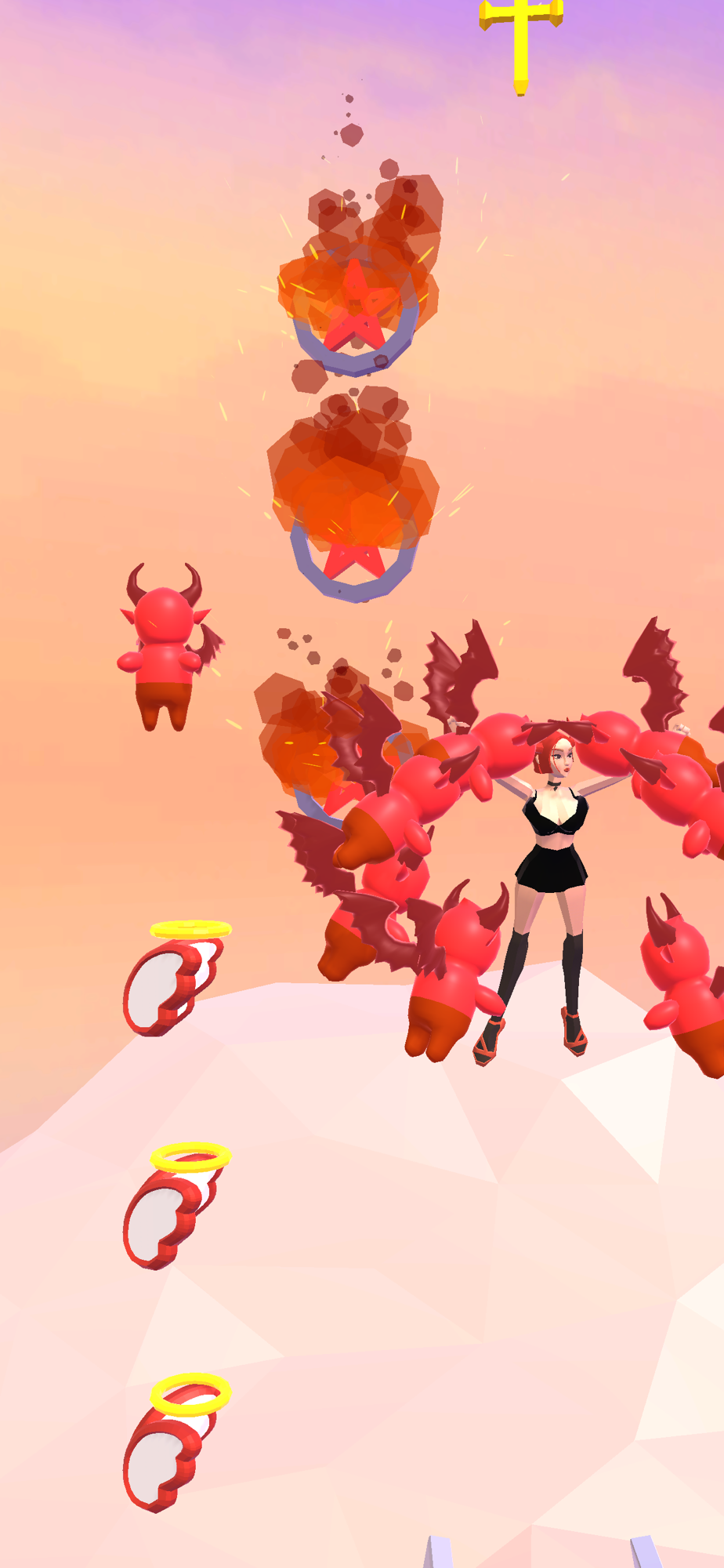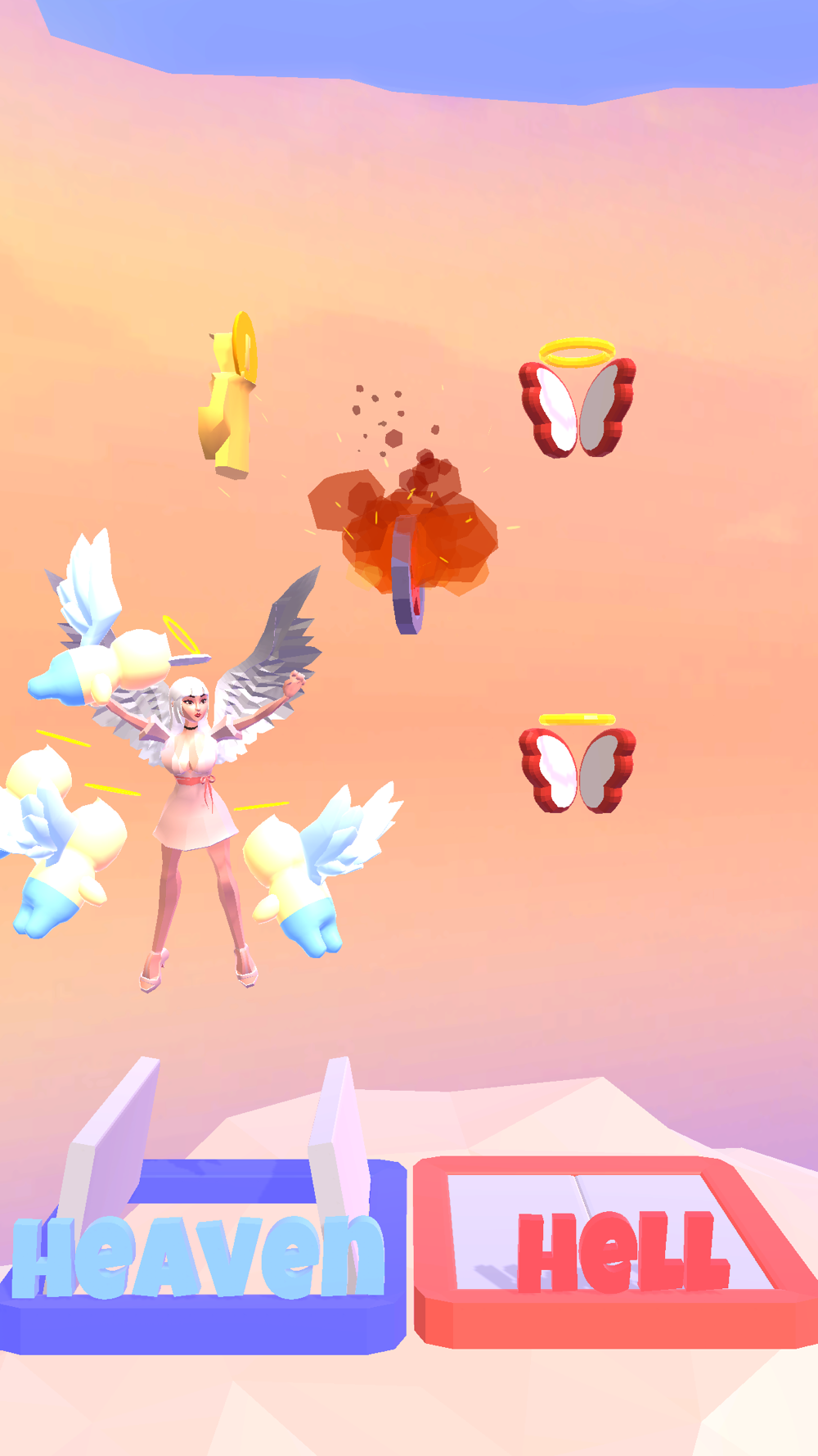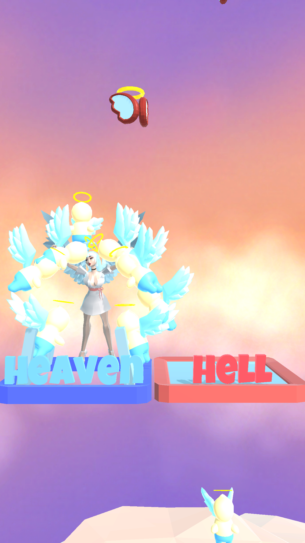 Collect angels/demons according to your standing and reach the end!