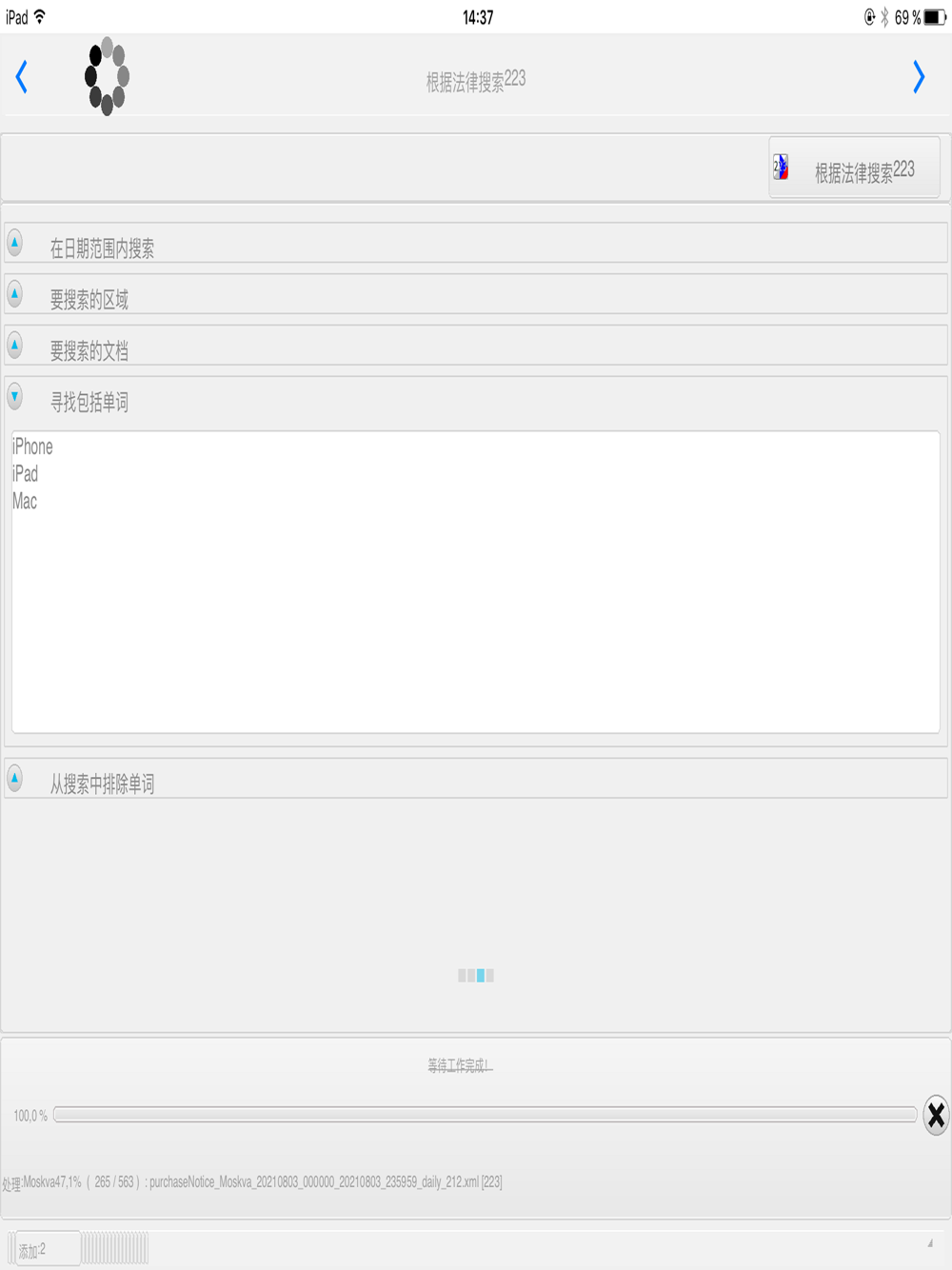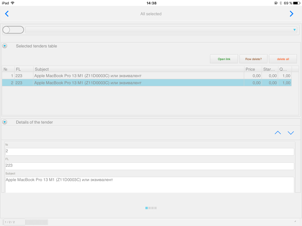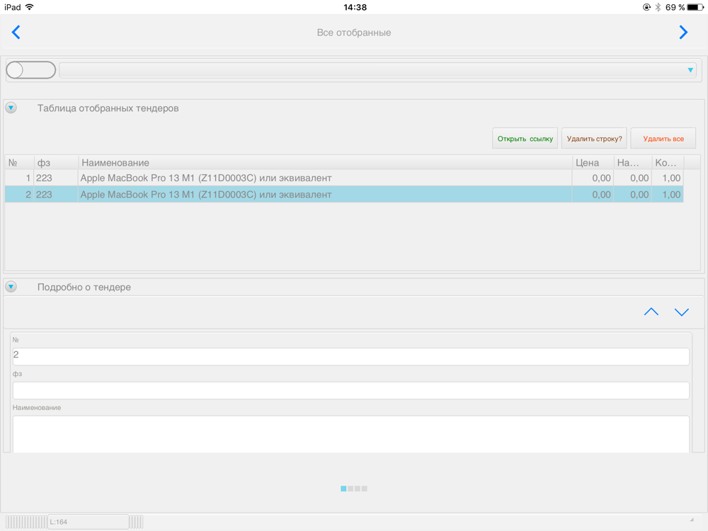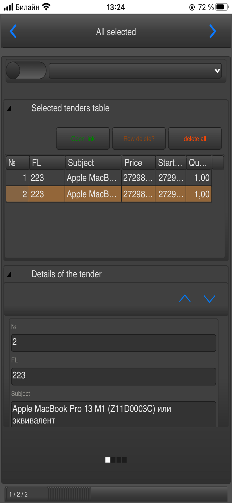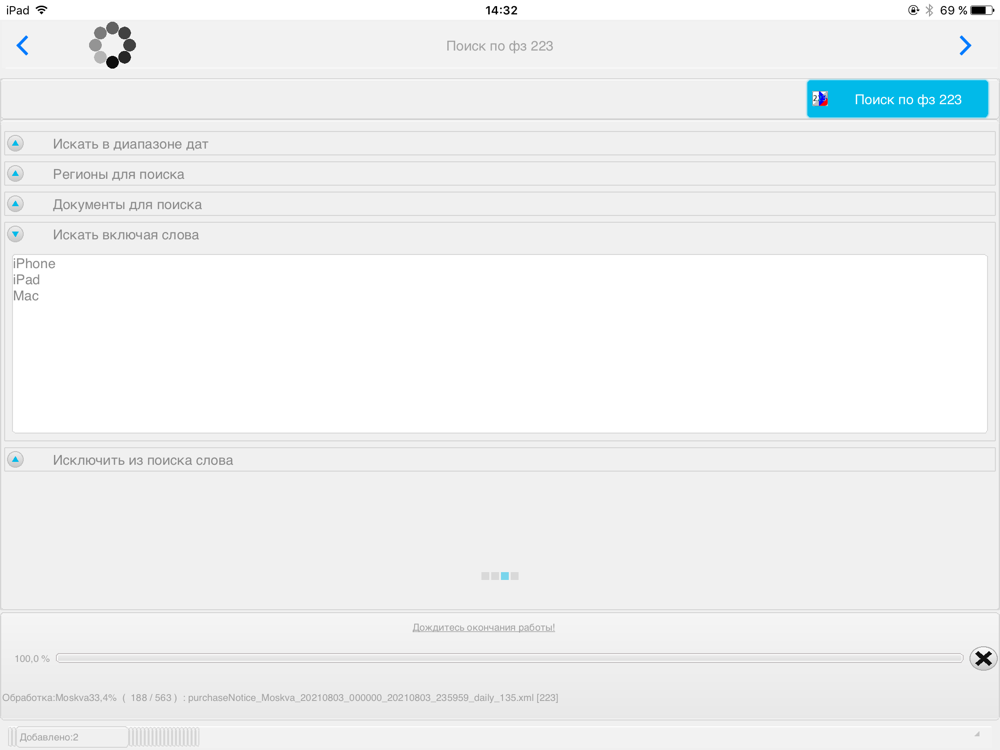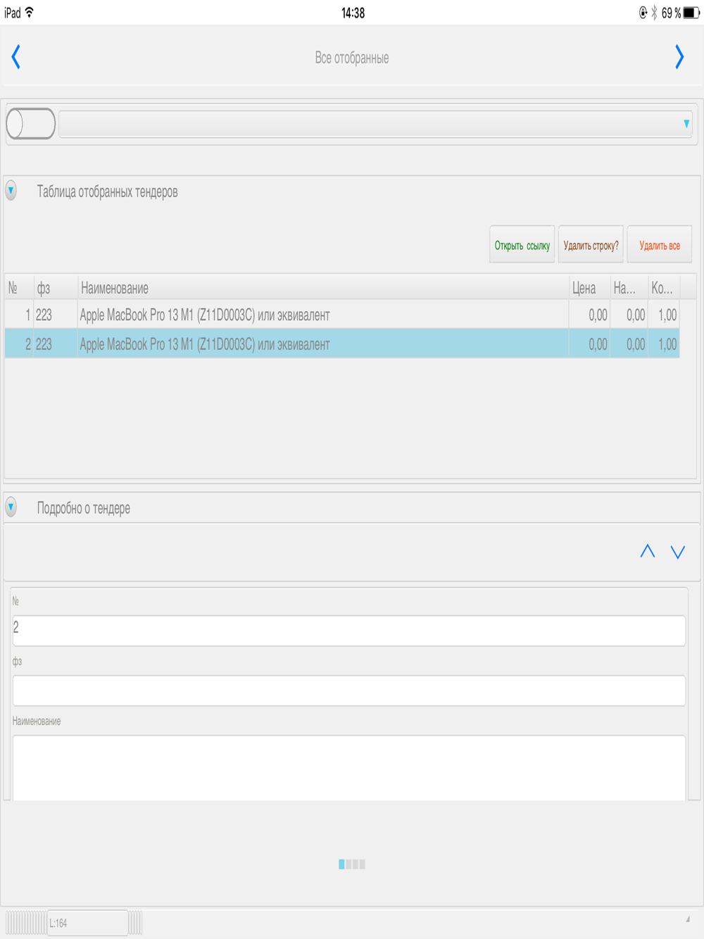 TendersMan helps you find the right tender in the public procurement system. Set the initial parameters and TendersMan will surely find what you need, save you from the painful viewing of a large amount of information. TendersMan is always there for you, it works equally well on iPhone, iPad, Mac and other devices. The program for searching for tenders in the unified information system in the field of procurement (UIS RF) passes information through the first and second level filters. The 1st level filter requires internet. The data is selected by dates, documents, regions, including keywords for search and excluding unnecessary words. The selected array of tenders is saved in the local memory of the mobile device. After memorizing the array, the Internet is not needed. Depending on the specified conditions, the 1st level filter can select an array from several to tens of thousands of tenders.