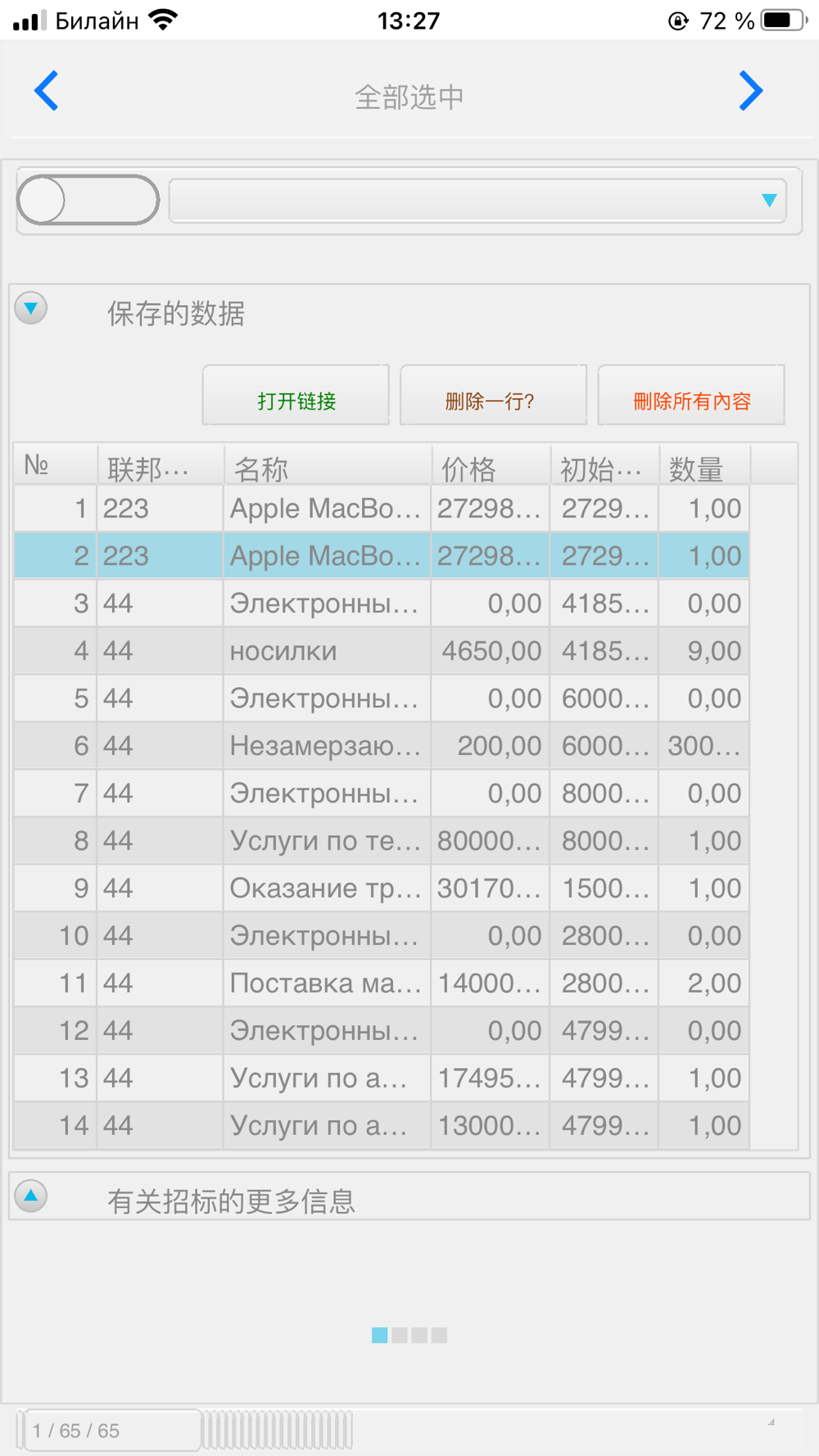The 2nd level filter allows you to find the required information in the array. The 2nd level filter does not need internet. The program allows you to automatically open links to the original documentation in the tender description. Having found the required tender, you can use the tender number directly in the State System. services apply for participation. The program interface supports three languages - Russian, English, Chinese.