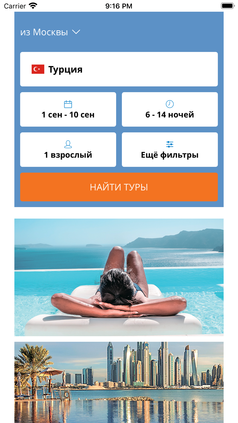 Приложение турагентства CORAL Travel - сервис поиска и бронирования туров онлайн..