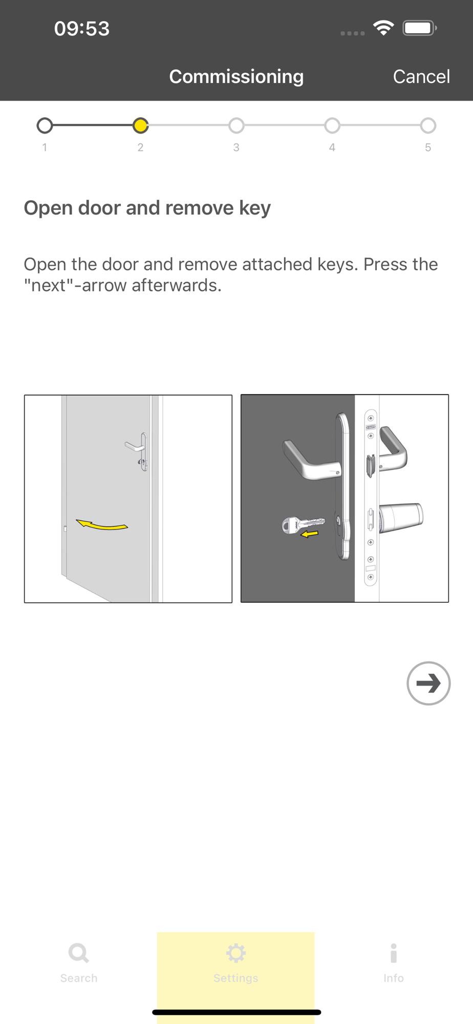 Already fitted EMZY to your door? After installation, you can start using with the configuration app. During commissioning, EMZY learns the locking and door parameters and configures its torque accordingly.