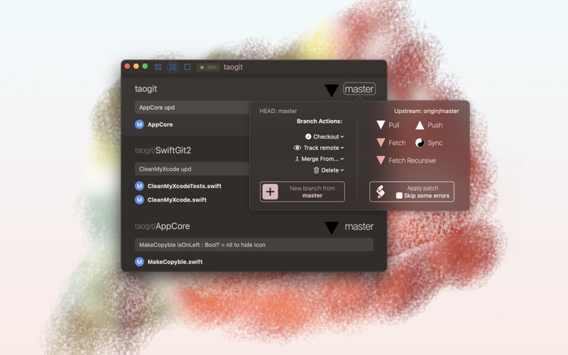 It will provide the necessary information and web links in the most valuable places. It can open a repository in a terminal, finder, Xcode, or web browser. Explain to you about SSH Keys and Access Tokens while providing you with links to GitHub, GitLab, or Bitbucket.
