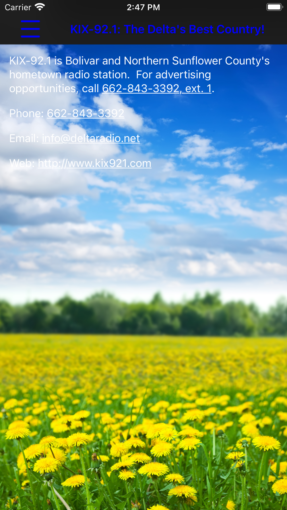 Listen to KIX 92.1 (WKXY) - Bolivar and Sunflower County’s top country station. It's Missippi’s very own station featuring the best mix of country, weather and news- right on your phone or table See a schedule of your favorite radio personalities as well as the title and artist information for every song we play. You can also listen to our sister Delta Radio Network stations.