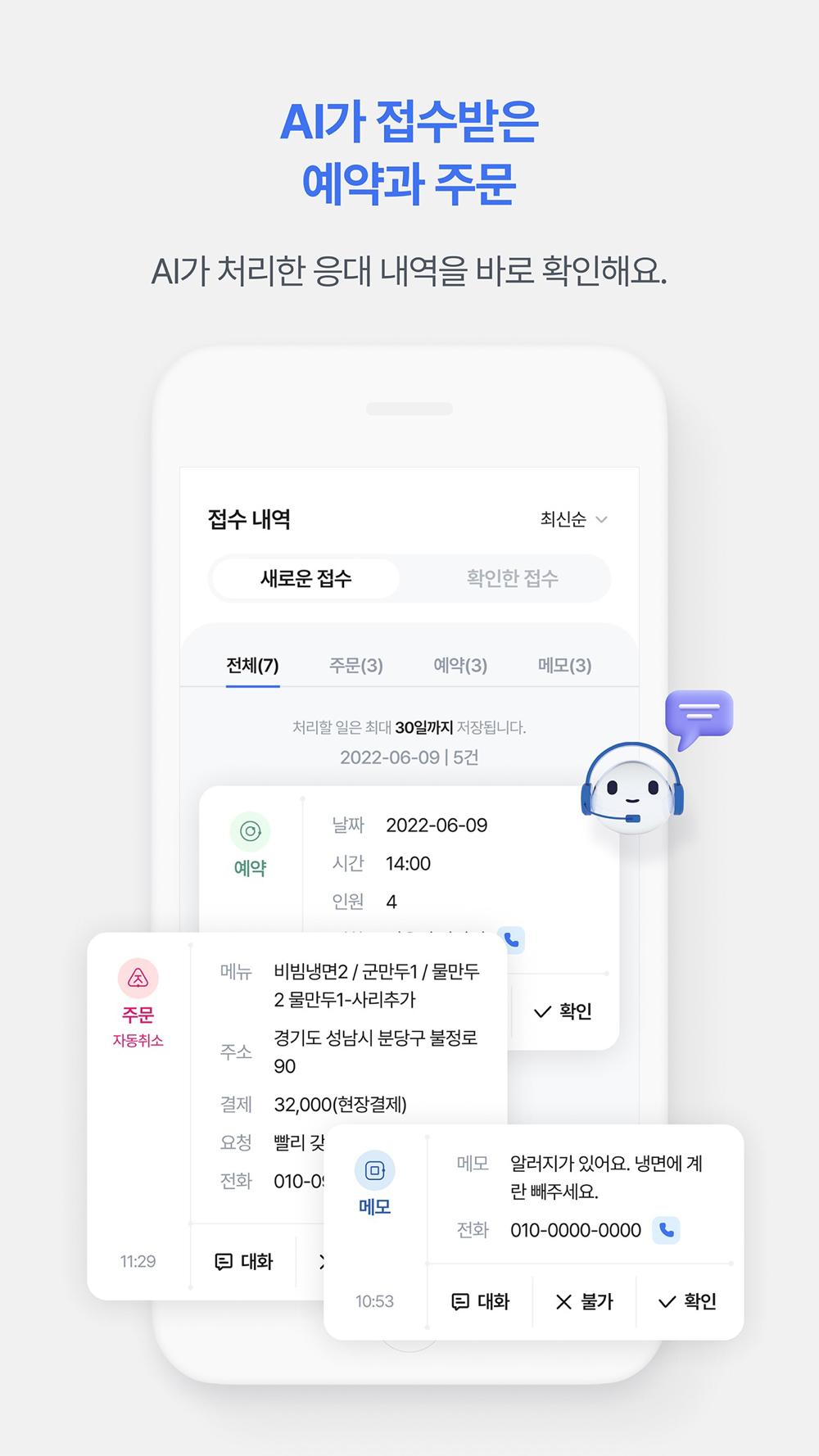 - 간단한 매장 설정으로 AI통화비서 응대 준비 완료! (영업시간, 위치, 주차 안내)