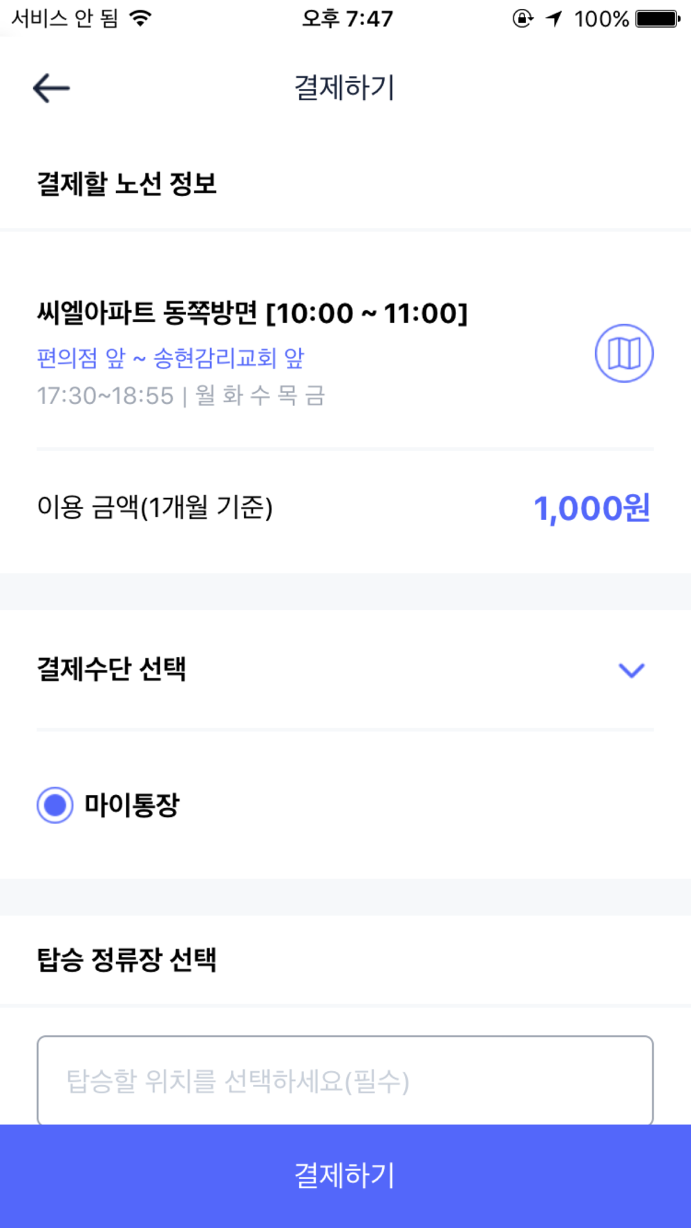 노선 결제 및 결제한 차량 탑승을 위한 안내, QR코드 등을 제공하는 서비스.