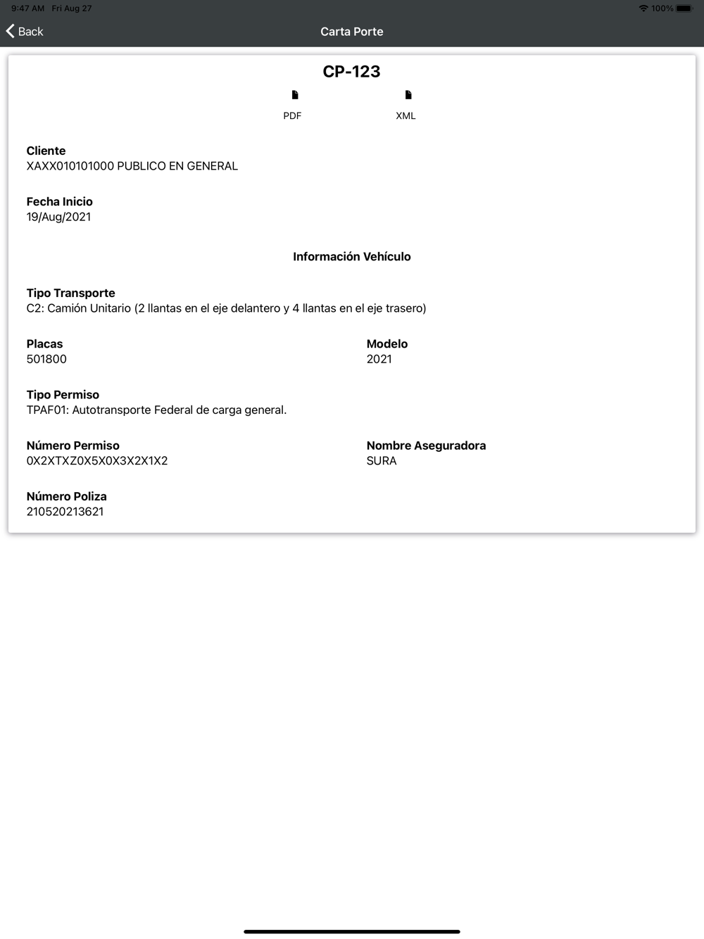 Desde la aplicación móvil Vengo Voy, podras ver tus carta porte (CFDI) y descargarlo y presentarlo cuando la autoridad lo requiera.