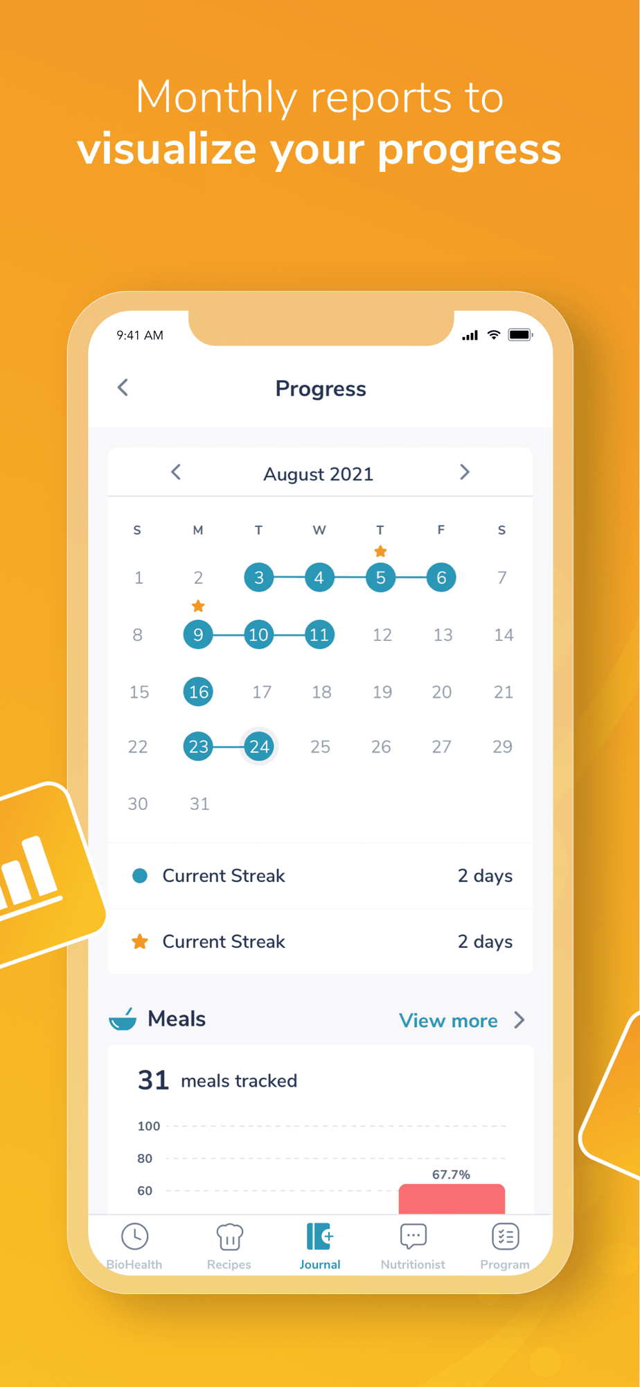 - Tracking the food, exercise, sleep, supplements, and meditation recommendations