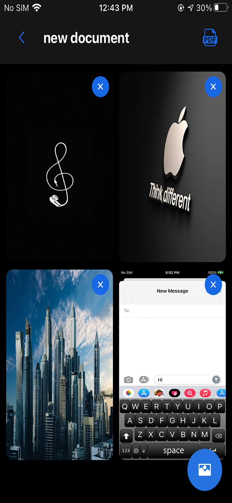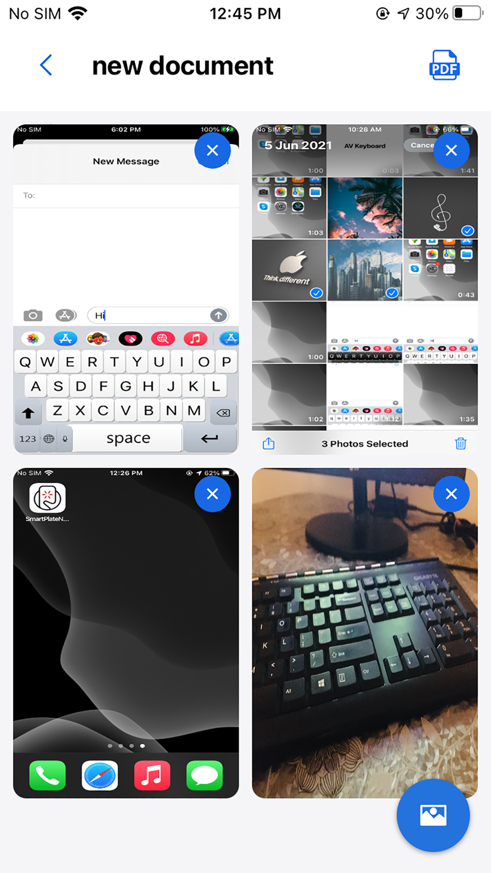 Using AVScan you can make the pdf file with the images using a camera or gallery.