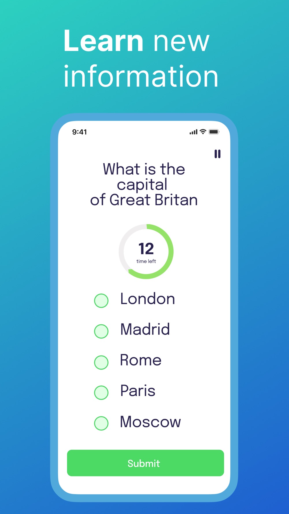 This quiz game does not require Wifi meaning you can answer all the general knowledge questions offline