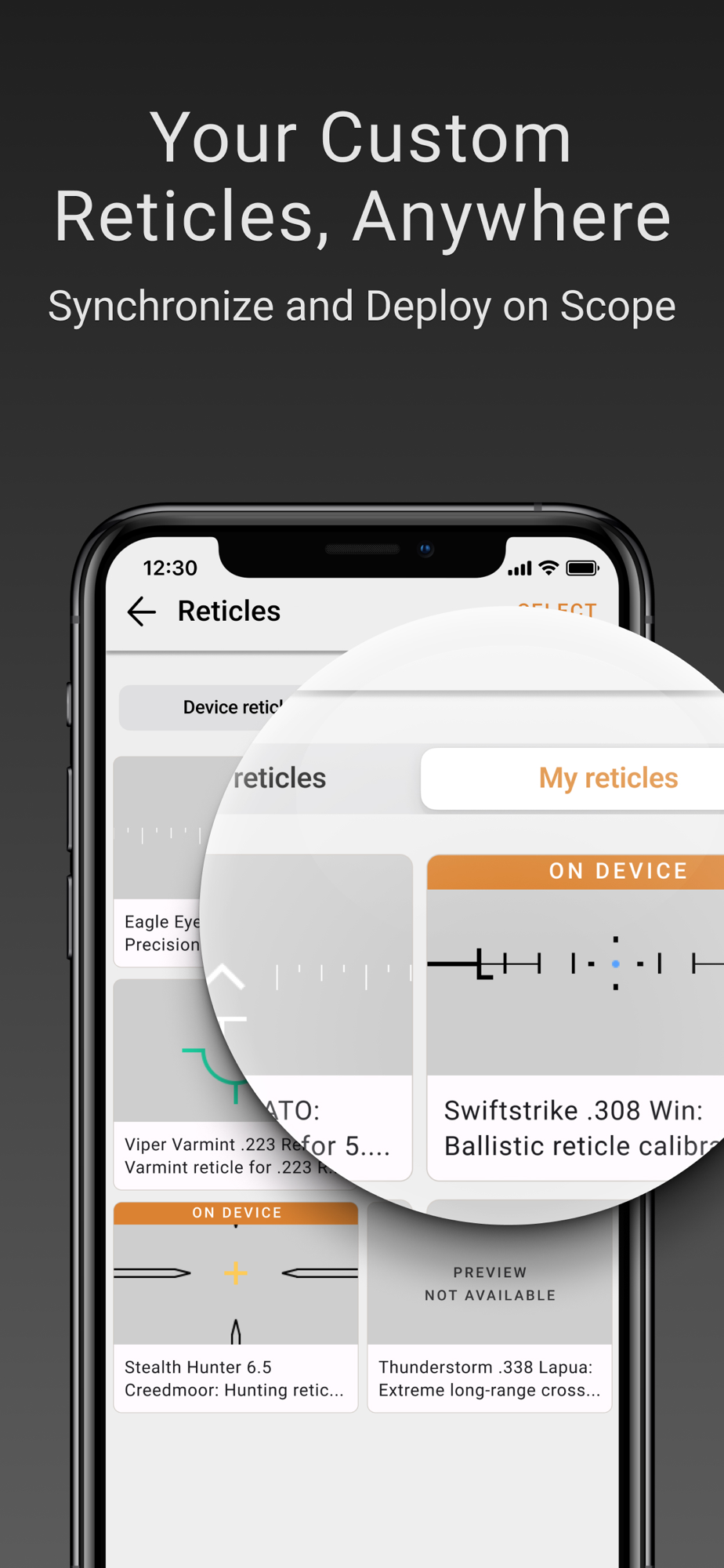 - Device Reticles: Access, manage, and modify the reticles on your connected device right from the app. Switch active reticles in real-time or remove those you don’t need.