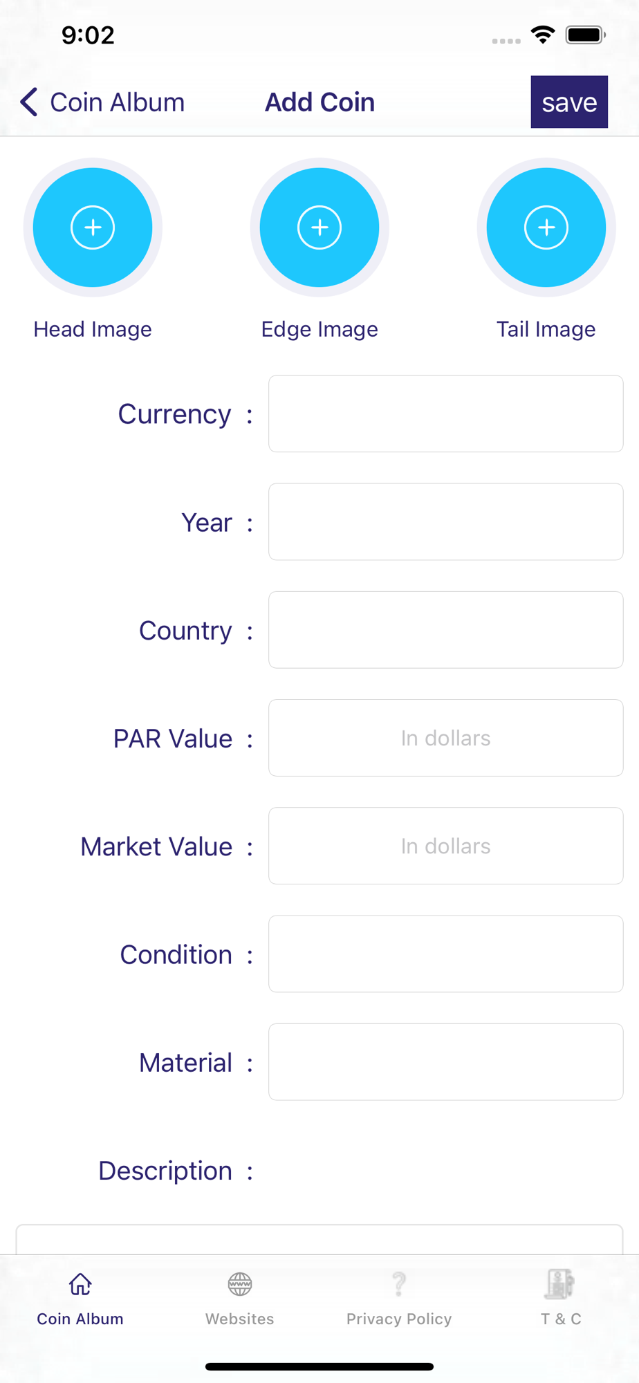 This application will allow you to collect your coins as one complete collection. you can divide your coins to albums, do quick filter by country, year,currency,easily find the desired coin.