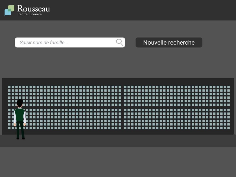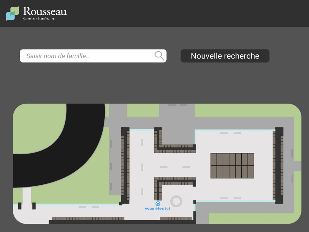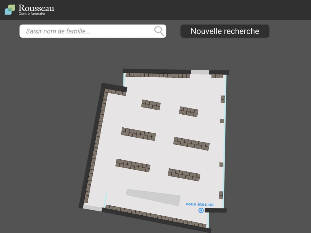 Application de localisation pour le columbarium, le mausolée et pour le mur commémoratif du Centre Funéraire Rousseau de Trois-Rivières. Trouver et localiser simplement une personne qui repose au salon.