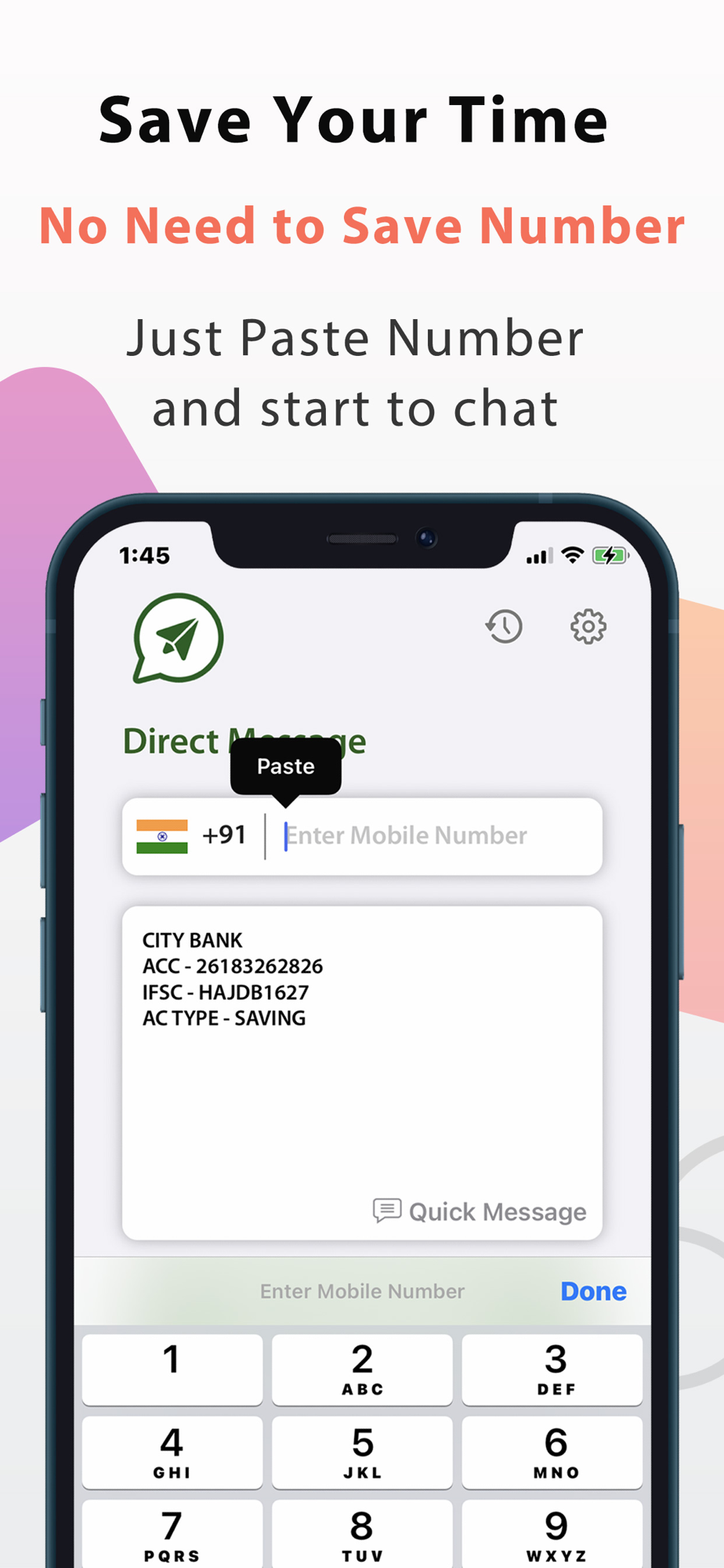Send Message instantly without saving number in your contact list. You can send text message and whatsapp message instantly without saving number.