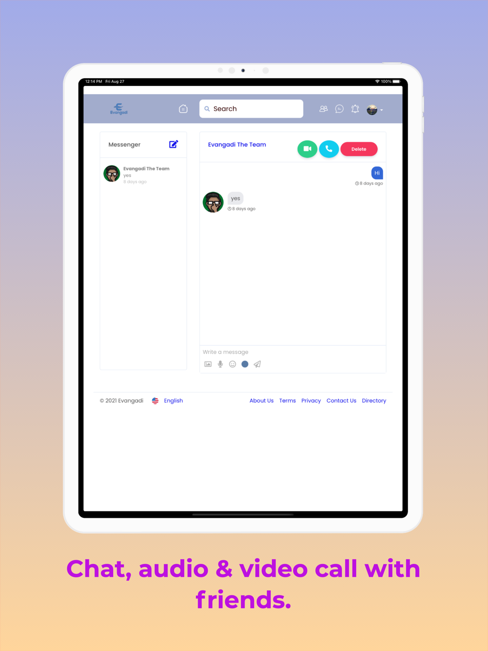 Evangadi is a social media app specifically for habesha. Use Evangadi to stay in touch with friends and family, anytime and anywhere with chat, audio or video call. Evangadi is free and offers simple, secure, reliable messaging and calling, available on any web browser and all phones.