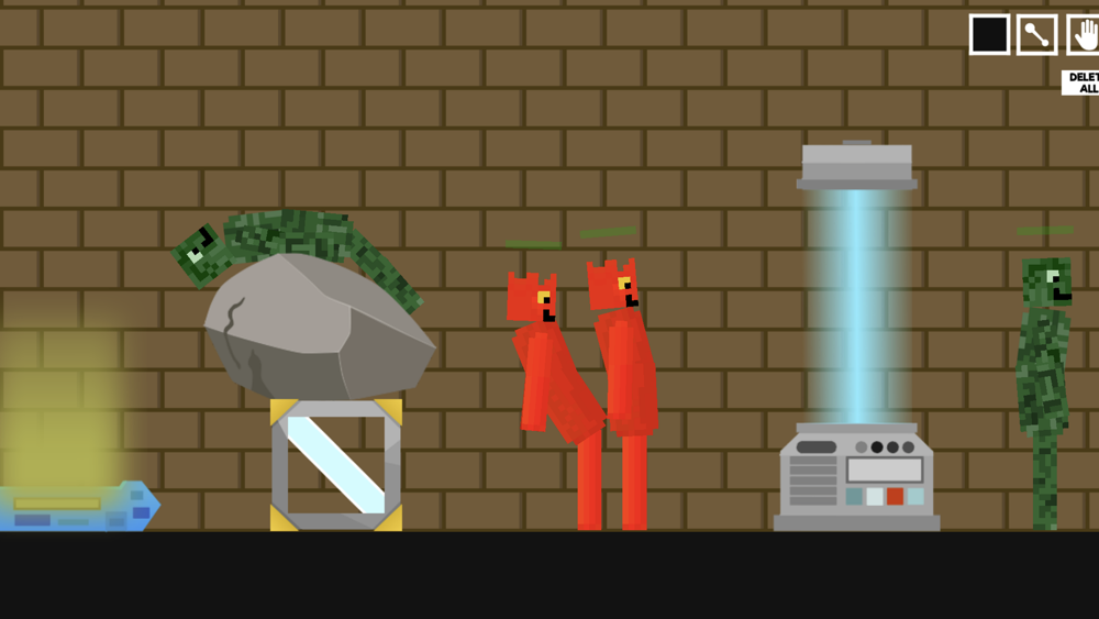 The game is easy to play, just drag and drop a thing you like and have a fun playing with fire and water playground. There is syringe that you can use for changing people skin or for pricking. Also you have so much more interesting items for playing with it.
