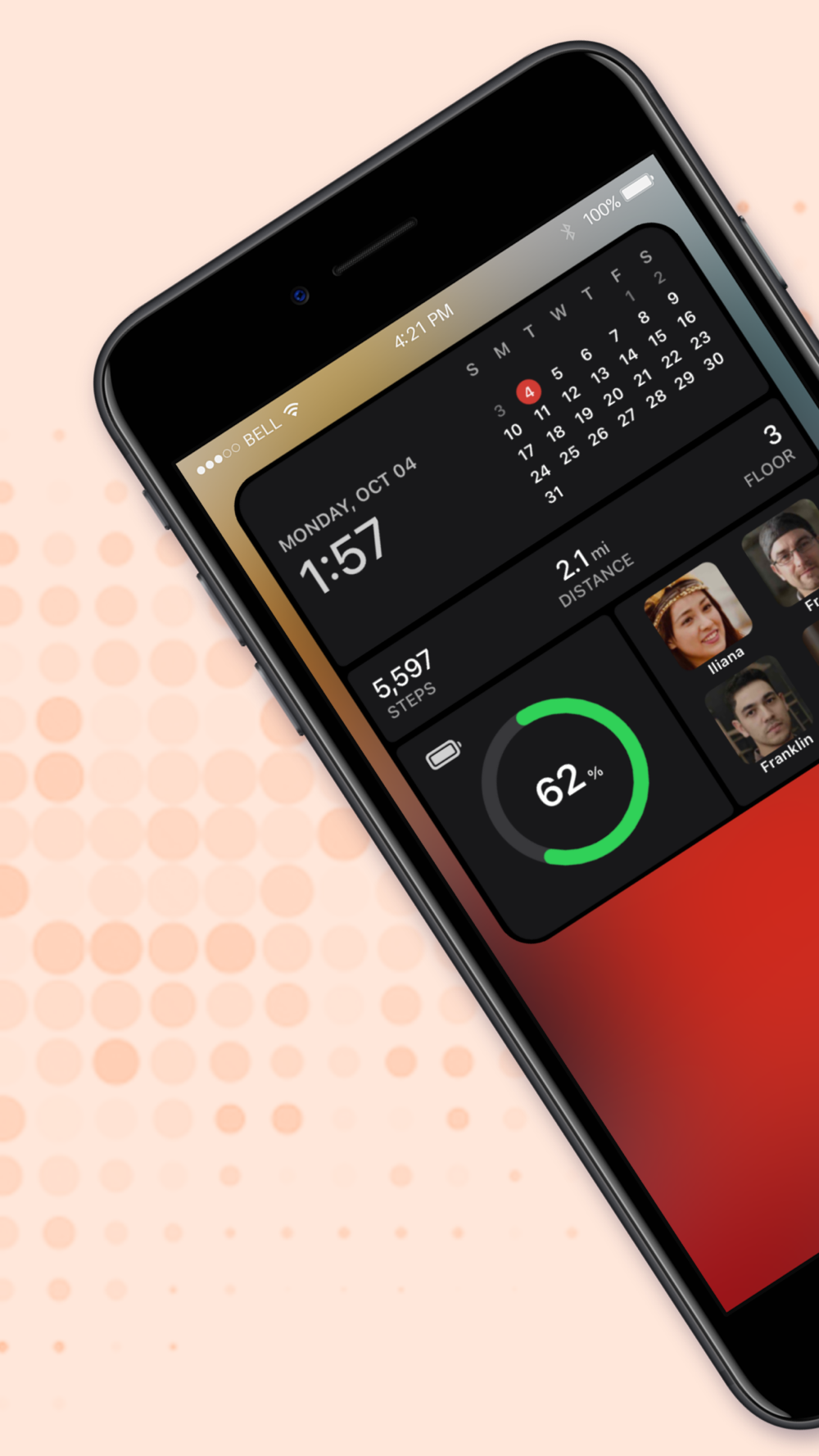 We represent steps, distance & floor data into the widget. It uses HealthKit to show today's steps, distance & floor information into the widget.