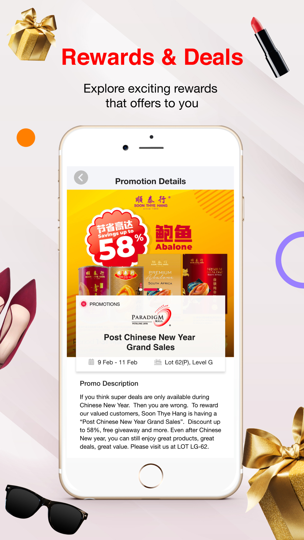 • Shop, earn your points and convert into e-vouchers or tenant’s vouchers.