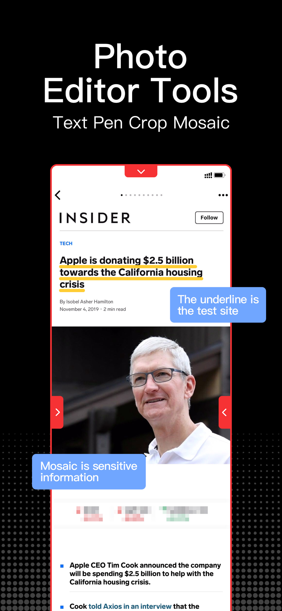 - Support for adding text, graffiti pen, crop, mosaic, etc. photo editing function.