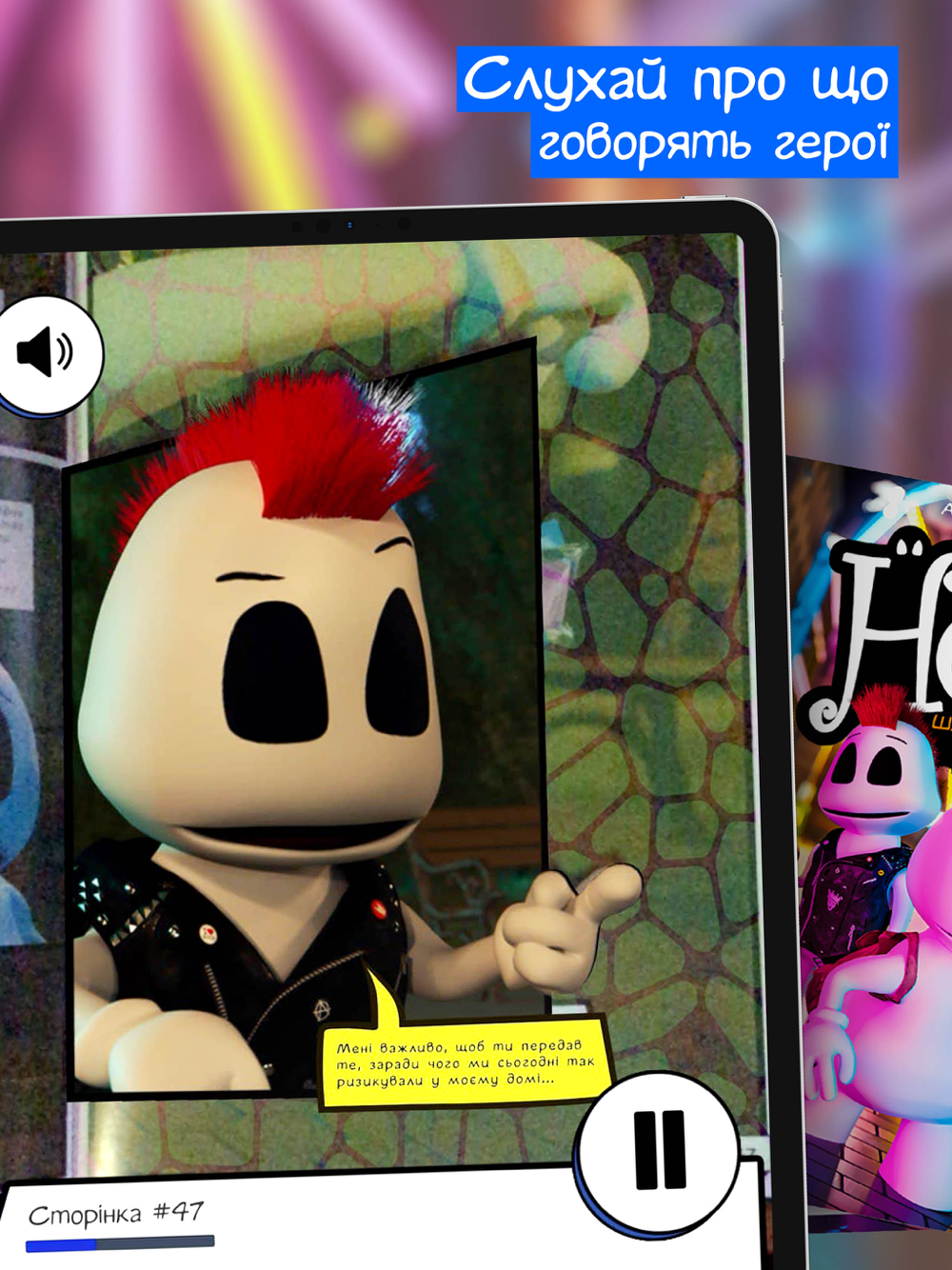 A comic in which every image comes to life. You can bring your pictures to life with just one touch. If desired, change the music in the background of the characters, listen to what the characters say. And with the help of "story mode", each scene will be played one by one - like a cartoon.