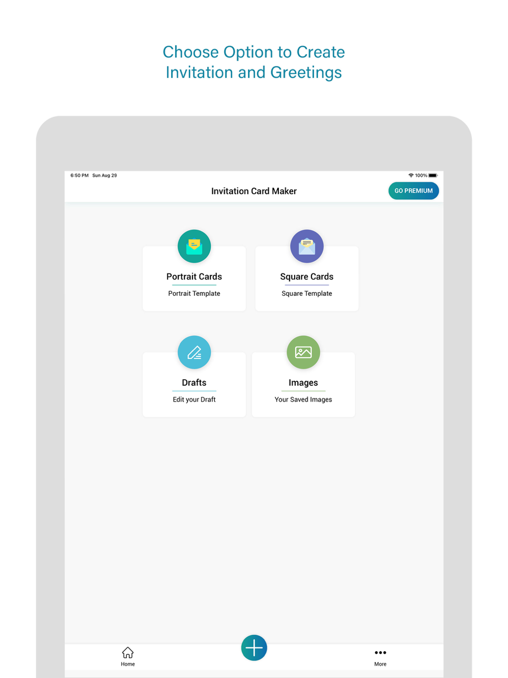But create invitation card yourself is now easy! Invitation Card Maker has collection of beautiful invitation card template that simplifies the user work and save time also. User has no more skill required to create invitation card. Just tap on any template to start editing.