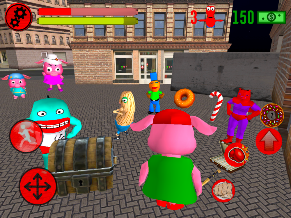 Welcome to the Huge City! You play for a piggy! Meet your favorite enemies, family and friends!