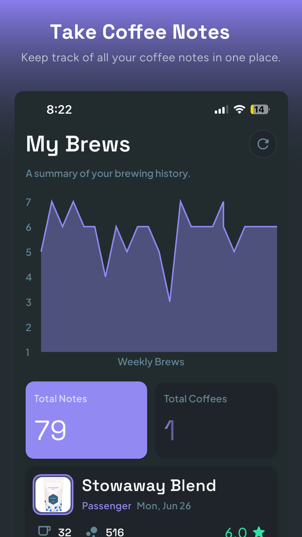 Welcome to our simple and intuitive coffee notes app! Never forget the details of your daily brewing again with our easy-to-use tool for recording and tracking your coffee notes. Whether you're a home brewer or a coffee enthusiast, this app is designed to elevate your coffee experience.