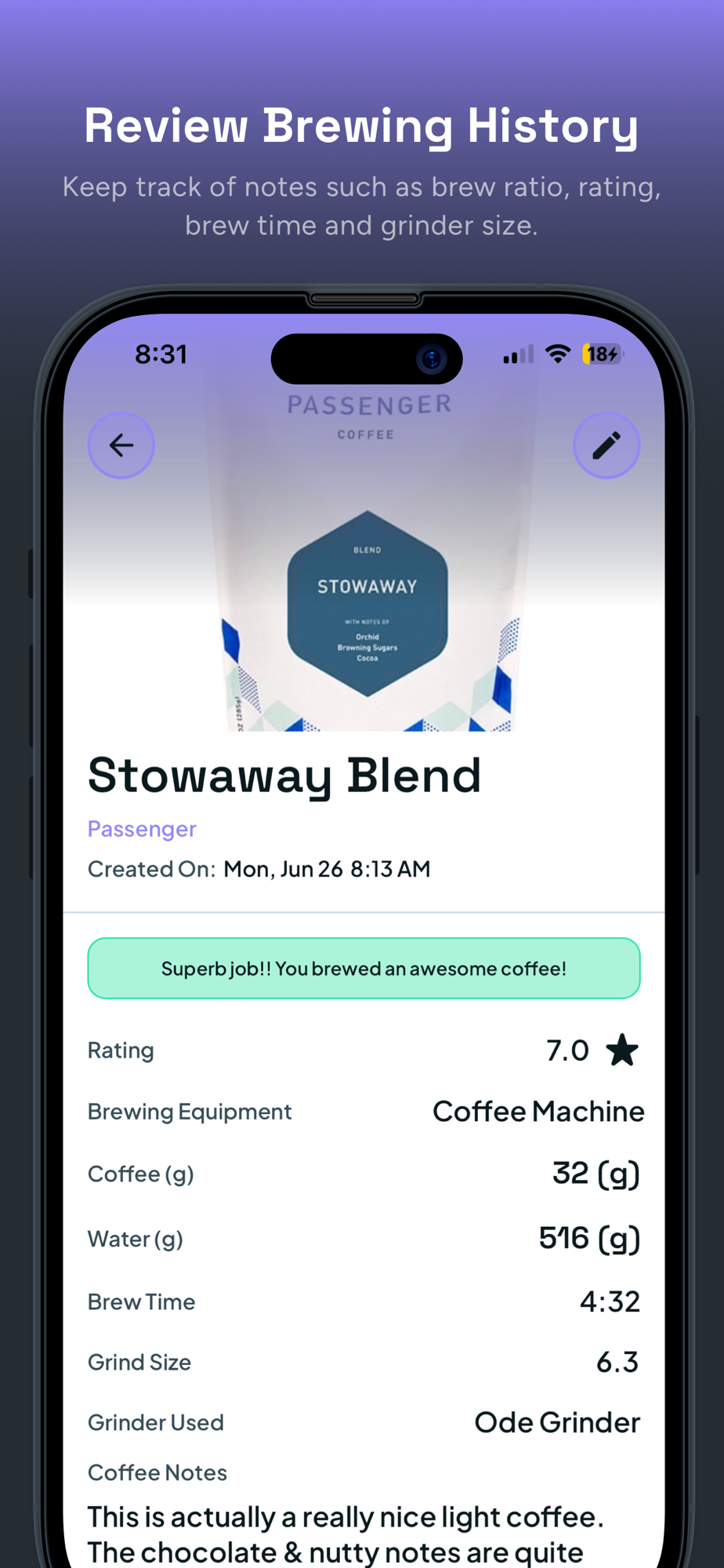 Whether you're an aspiring home barista or simply enjoy a great cup of coffee, our app is your go-to tool for keeping a record of your coffee journey. Download now to start capturing the intricate details of your brewing process and unlock the potential to create your best coffee yet!