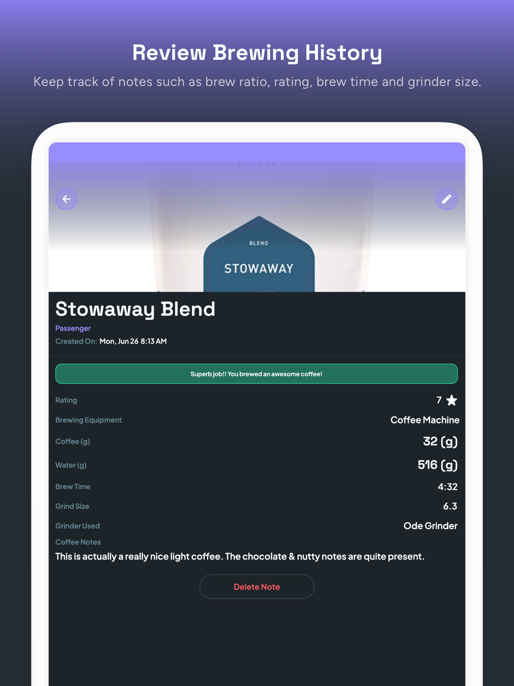 Do you enjoy exploring various brewing methods or experimenting with different coffee beans? Our app is perfect for you too! Easily create separate notes for each brewing method or coffee blend, making it simple to reference and replicate your favorite recipes.