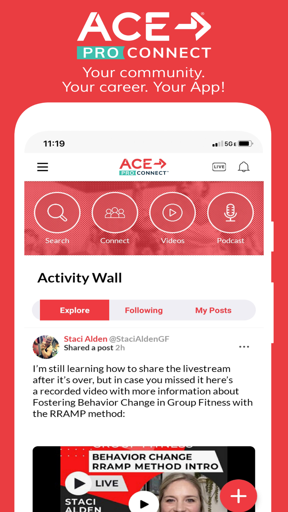 ACE Pro Connect is a social platform exclusively for ACE Certified Pros. It’s a place where our ACE Family can come together, wherever they are, to learn, grow and connect.