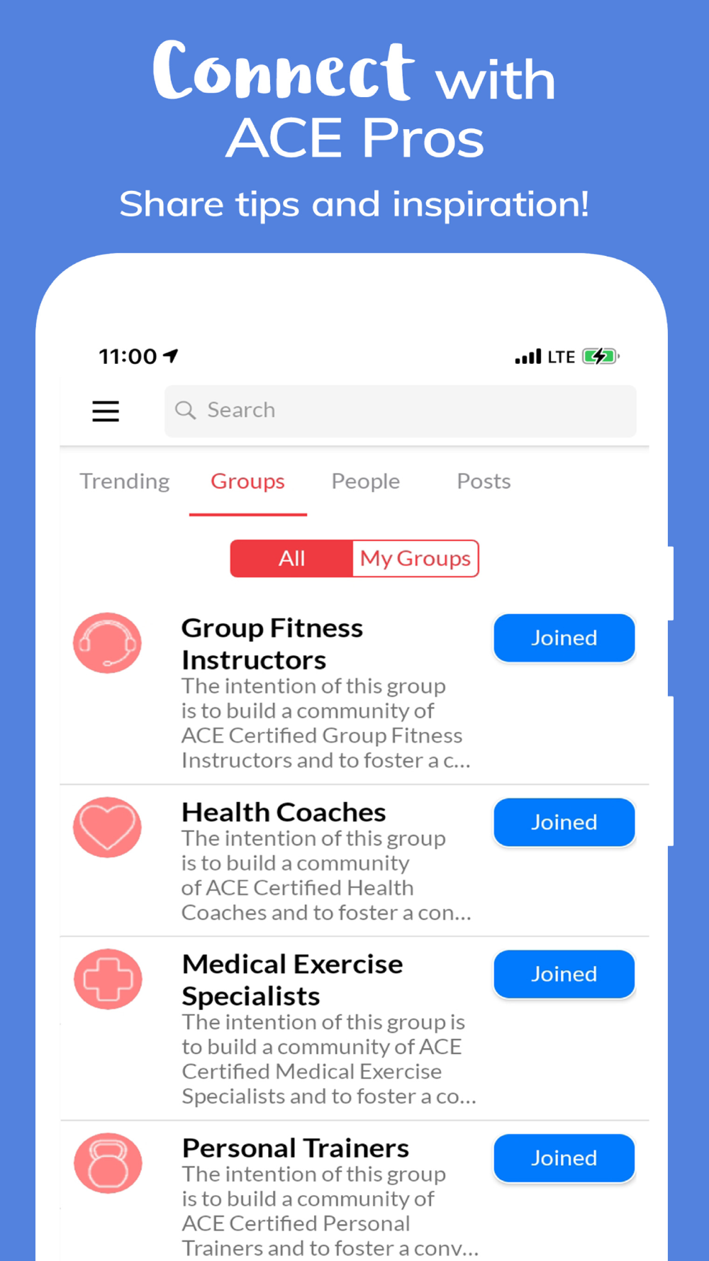Whether you want to share your experience in the health and fitness space, need advice on growing your business or want to celebrate the progress you’ve made, the ACE Pro Connect app connects Pros to Pros so you can move more, together.