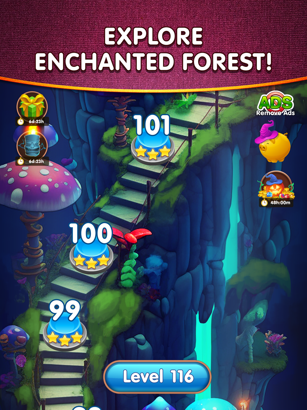 - Exciting Levels and Challenges: Start your bubble adventure through a magic forest, and unlock new levels and chests. Every level brings an unforgettable twist.