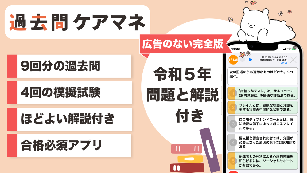 2023年10月の問題と解説を掲載!!ケアマネの過去問をアプリ化。過去問検索やマイリスト機能。ランダム10問テストなど、国家試験を受験した時に、あったら良かったと思う機能を搭載しています。