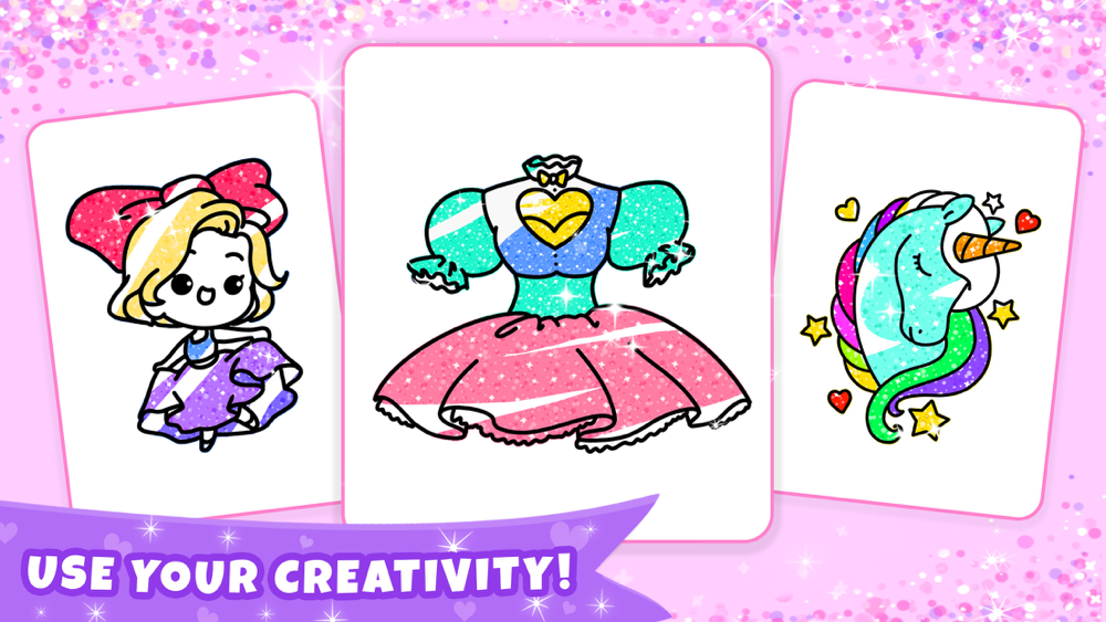 All favorite things of girls are waiting for you in our sparkle coloring game. ALL really enjoy this girls coloring book for toddler. Our princess coloring games for free are unique because they teach your child not only draw but also develop creative thinking. Your baby will learn how to express his thoughts and artistic abilities. It’s really interesting and cute ALL coloring book for girls and toddler ALL enjoy during painting.