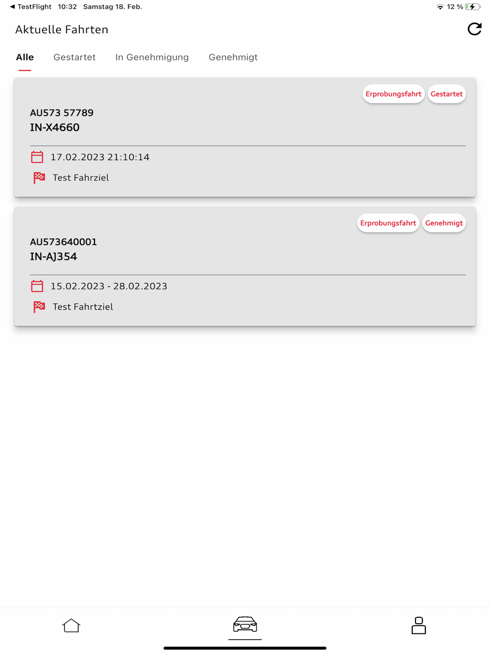 - Anzeigen von stets aktuellen Hinweisen und Nutzungsauflagen der Erprobungs- und Entwicklungsfahrzeuge