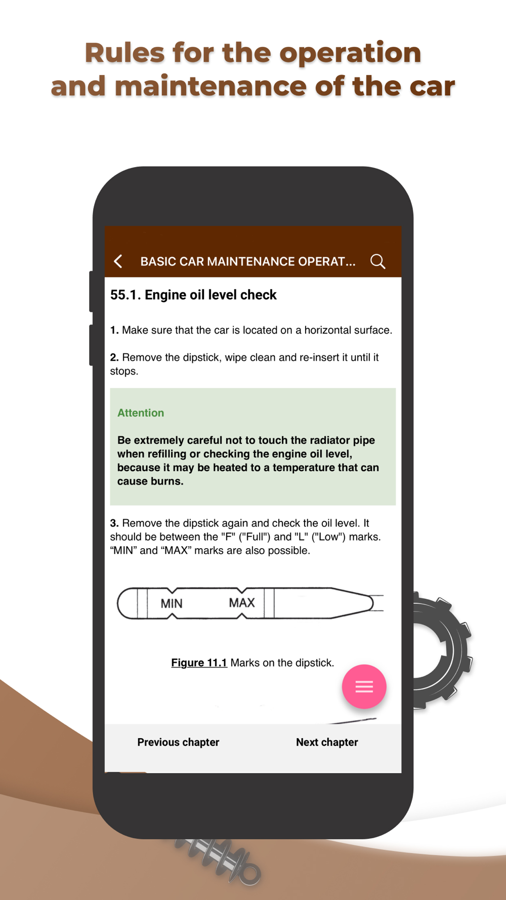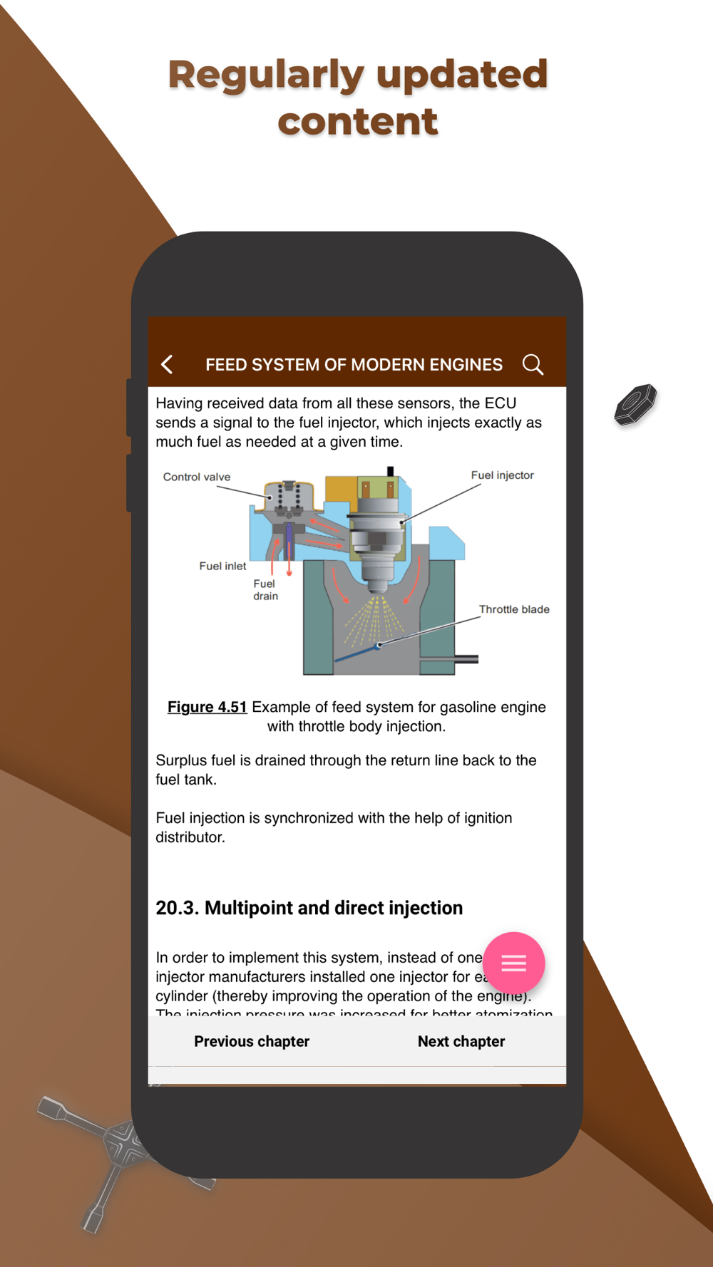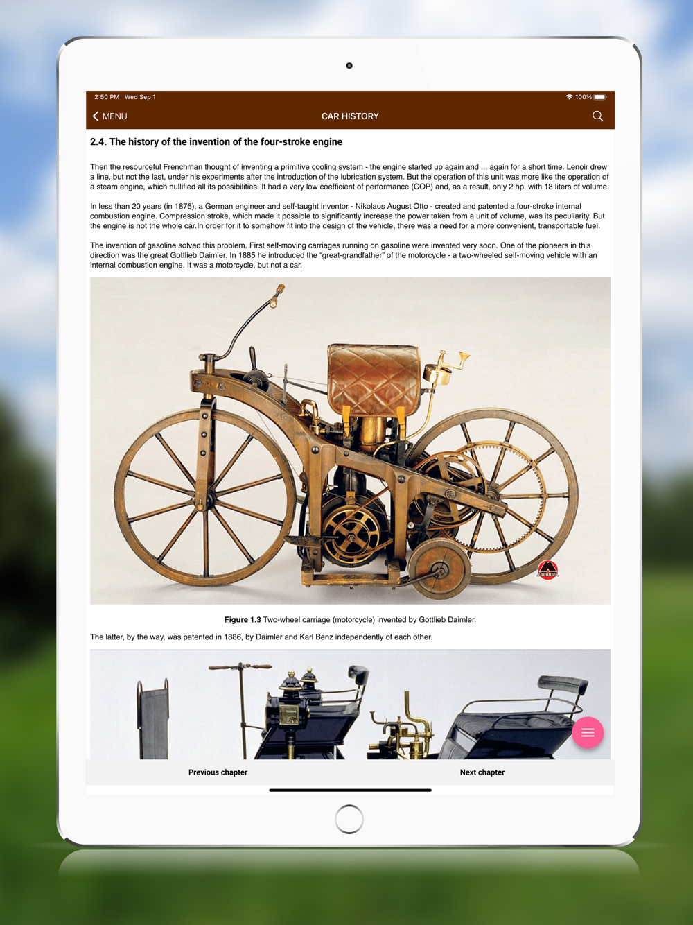 Getting started on this application, we set a goal to present a rather difficult theoretical course on the automobile engineering in the most accessible form. Basic knowledge of vehicles' structure will supply a novice driver with confidence in the fact that he will be able to control the situation of any breakdown, predict the amount of necessary work at the service station and just can competently exploit its vehicle.