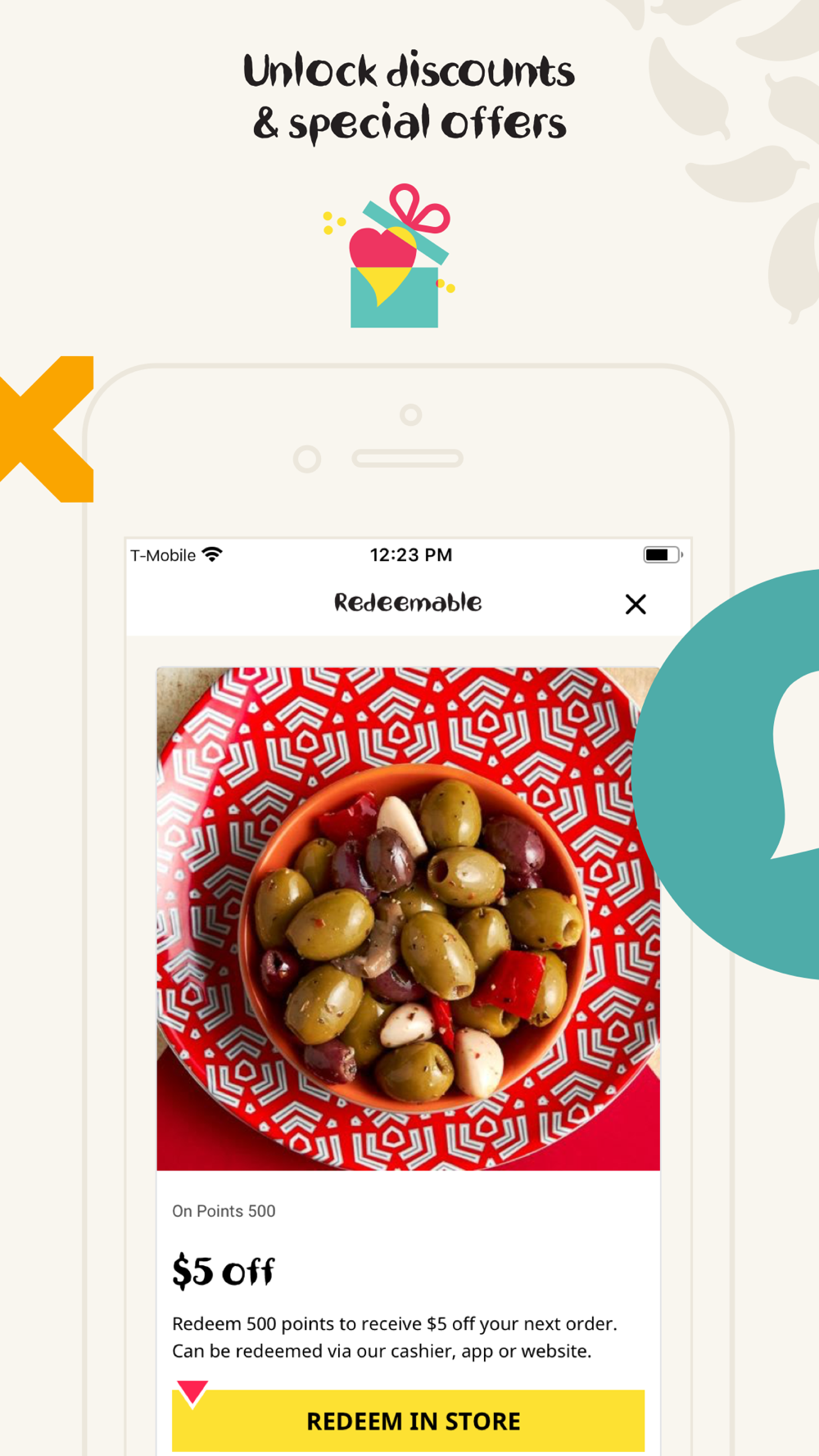 Earn 10 POINTS for every $1 SPENT. Get a $5 OFF for every 500 POINTS. Points add up for discounts that can be applied to drinks, sides, entrees, and more.