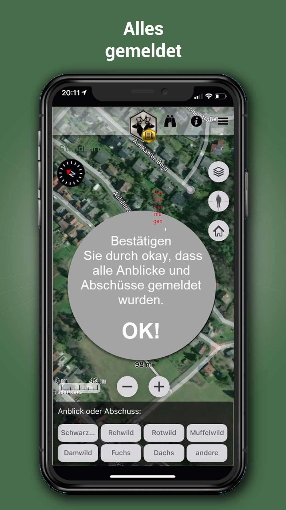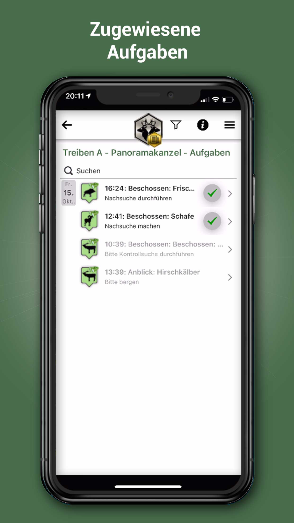 Alle Sichtungen, erlegte und beschossene Stücke können erfasst und werden automatisch an die Jagdleitung gemeldet.