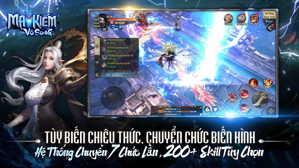 - Từ 4 lớp nhân vật cơ bản, trải qua 7 lần chuyển chức tạo nên 28 trường phái nhân vật hoàn toàn khác biệt. Bộ kỹ năng chủ động và bị động lên tới hơn 200 chiêu thức thỏa sức lựa chọn, tự build bảng kỹ năng riêng.