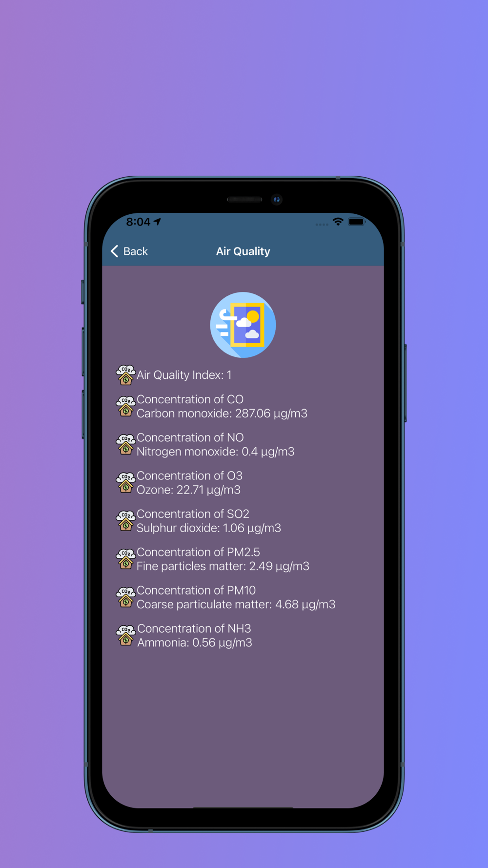 - Pressure, humidity, wind speed, visibility, ultraviolet index;