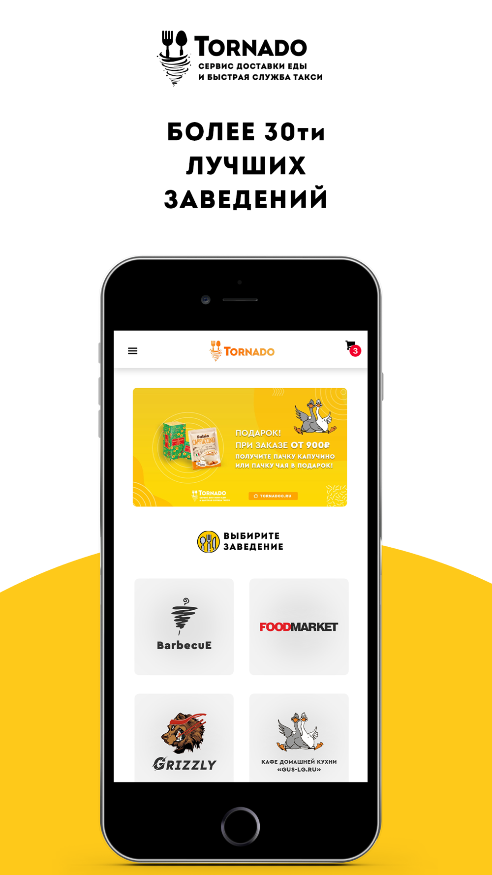 У нас большой перечень заведений и заказать еду в приложении Tornado можно всего в несколько кликов. Удобно. Легко. Быстро.
