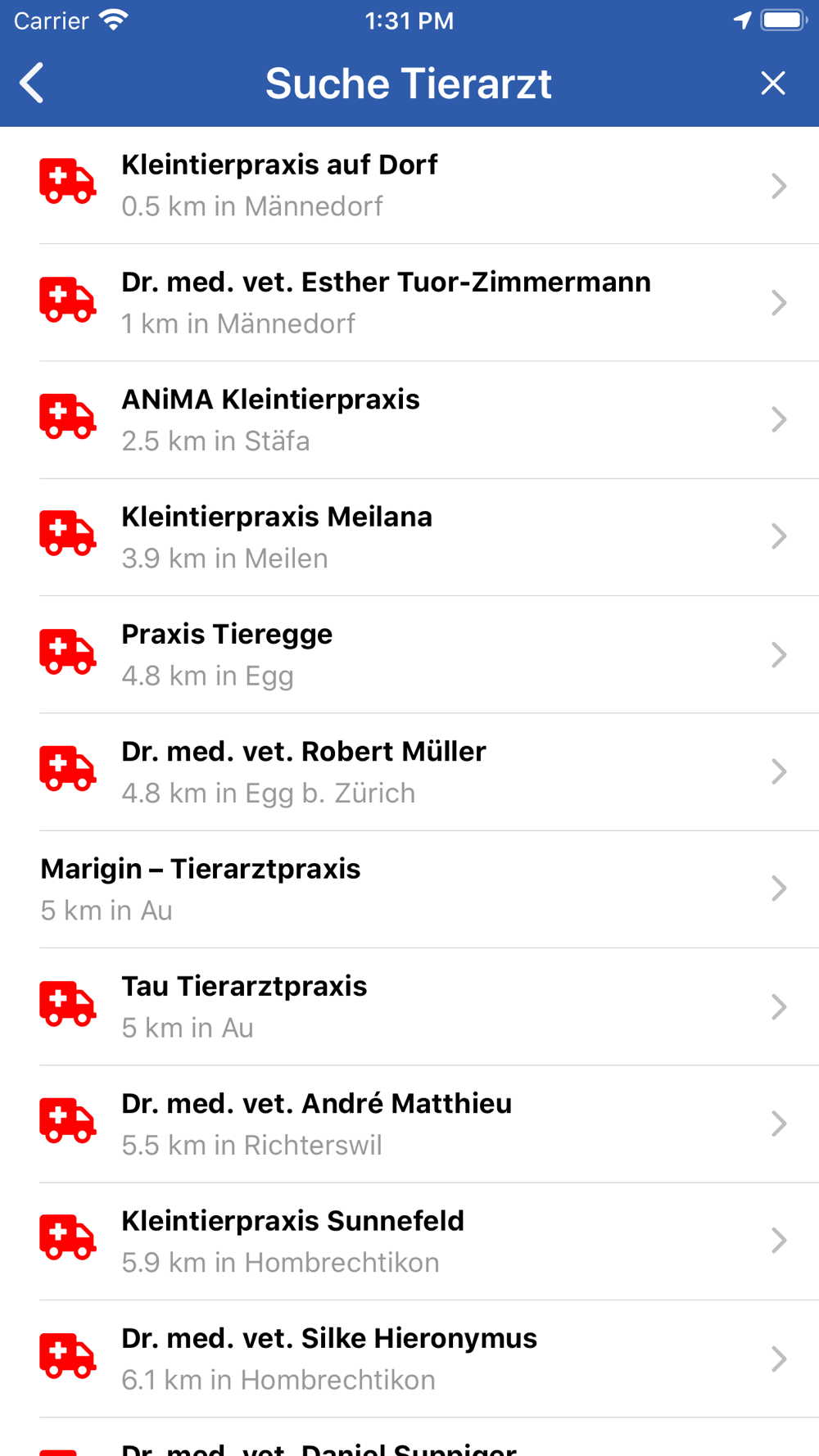 Den Schwerpunkt der App bildet eine durchsuchbare Liste von Symptomen und Maßnahmen. In den entsprechenden Kapiteln erfahren Sie schnell und auf einen Blick, was im Notfall zu tun ist.
