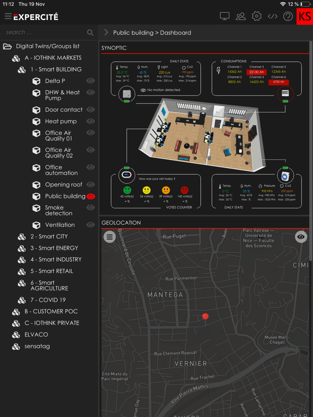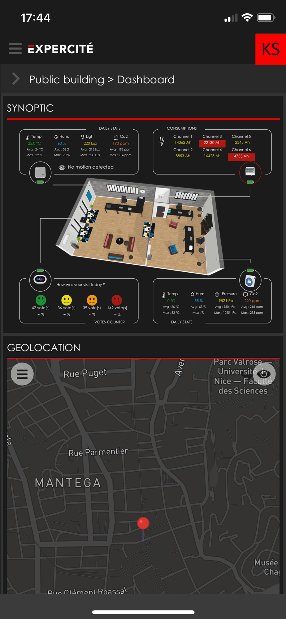 Expercite provides a full featured service for IoT and M2M projects. From data acquisition to Dashboards it helps users to meter and manage their assets. Some features- Full connectivity through networks including wired, cellular and narrowband- Backend connectivity (SIGFOX, Operated LoRa networks, SORACOM, ...)