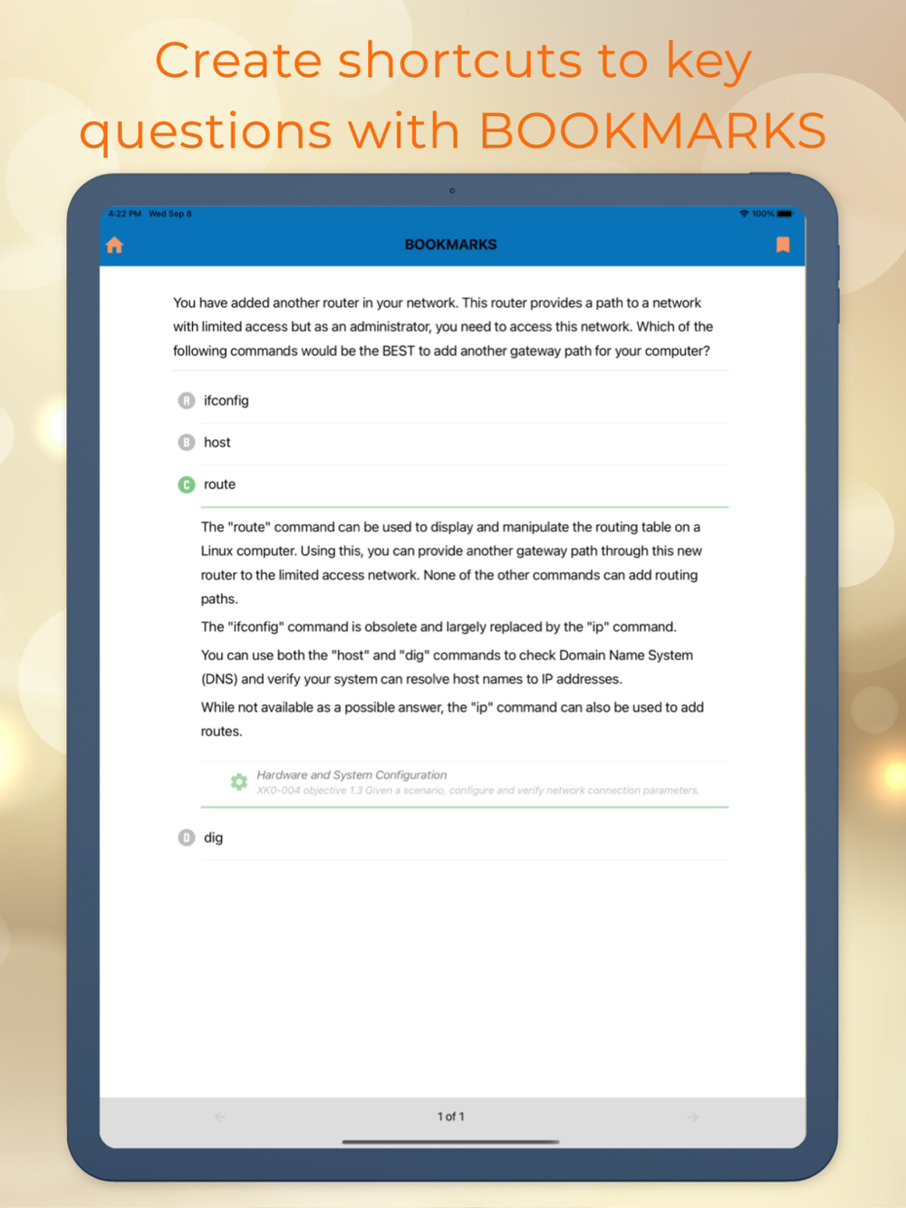 BOOKMARKS: Bookmark difficult questions and flashcards. Access them easily later.