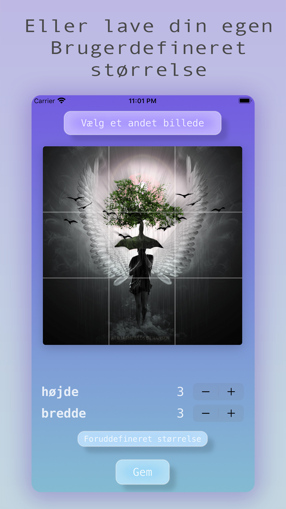 AnyGrid skære dit billede op i grids brug vores Foruddefineret størrelser 3 - 6 - 9 - 12 grids eller brug vores Brugerdefineret størrelse guid til og lave dit grid som du ville